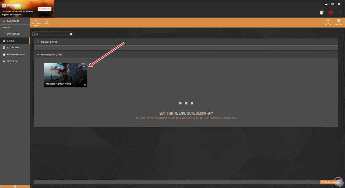 3) 이제 게임의 모드를 다운받는 과정을 설명드리겠습니다. 게임이 정상적으로 선택되었다면 왼쪽 상단에 게임 이미지가 나타나는데요. 이 상태에서 왼쪽 메뉴 MODS를 눌러줍니다.