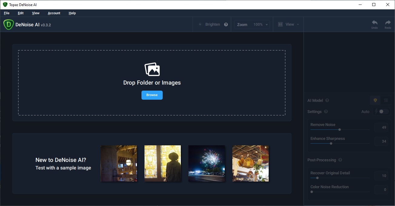 모든 과정은 끝납니다. 따로 계정을 만들지 않아도, 로그인을 하지 않아도 되며 무료 체험 기간이 적용되지 않은 상태에서 토파즈 디노이즈 AI의 모든 기능들을 정상적으로 이용할 수 있습니다.