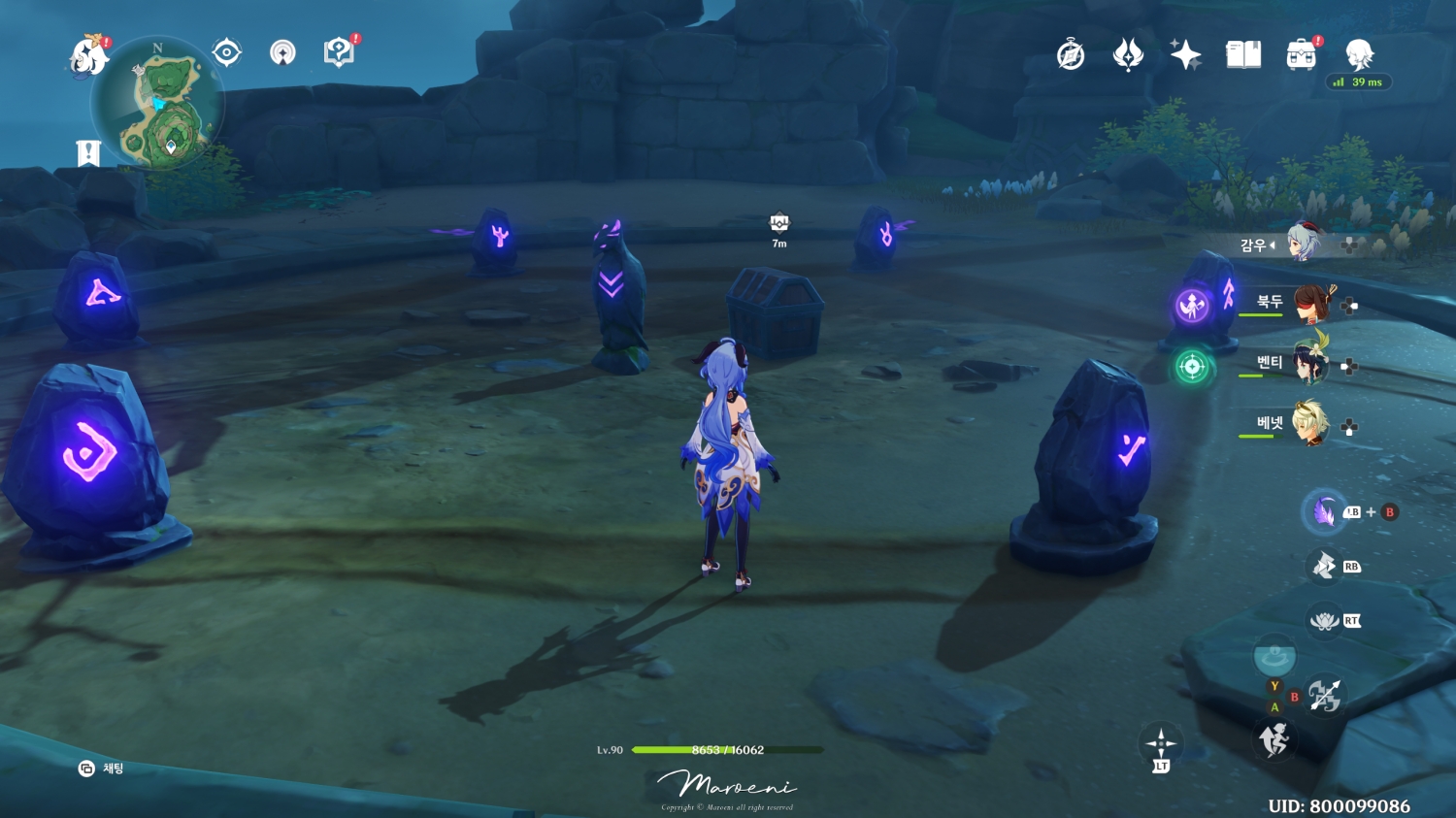 해당 장소에 도착했다면 주변에 장치 7개가 있는데, 이곳에 7개의 석판을 모두 사용해주시면 됩니다.