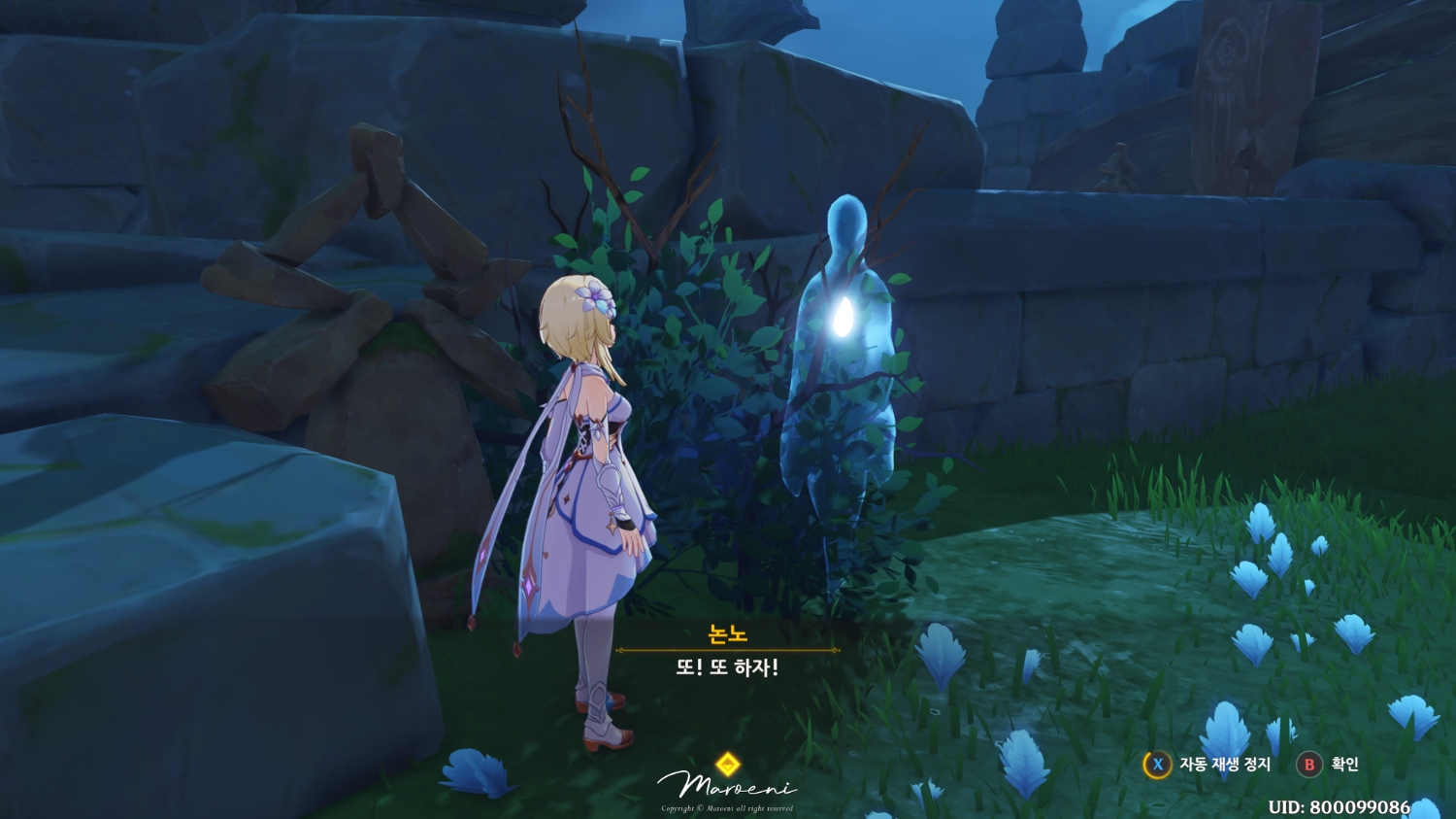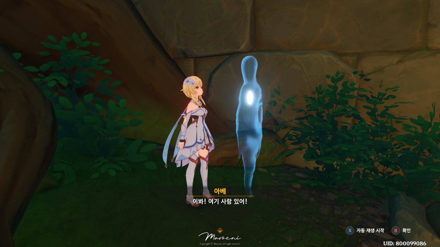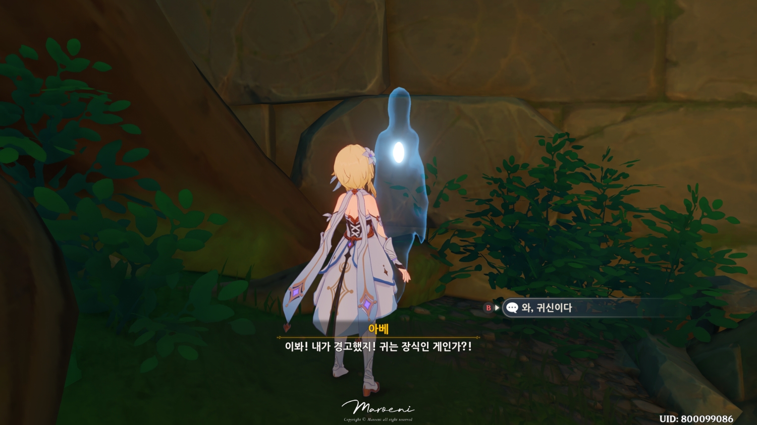 다시 이 장소를 방문해서 형광 버섯을 수집하게 되면 아베가 또다시 등장하는데, 다행히도 이번에는 사라지지 않습니다.