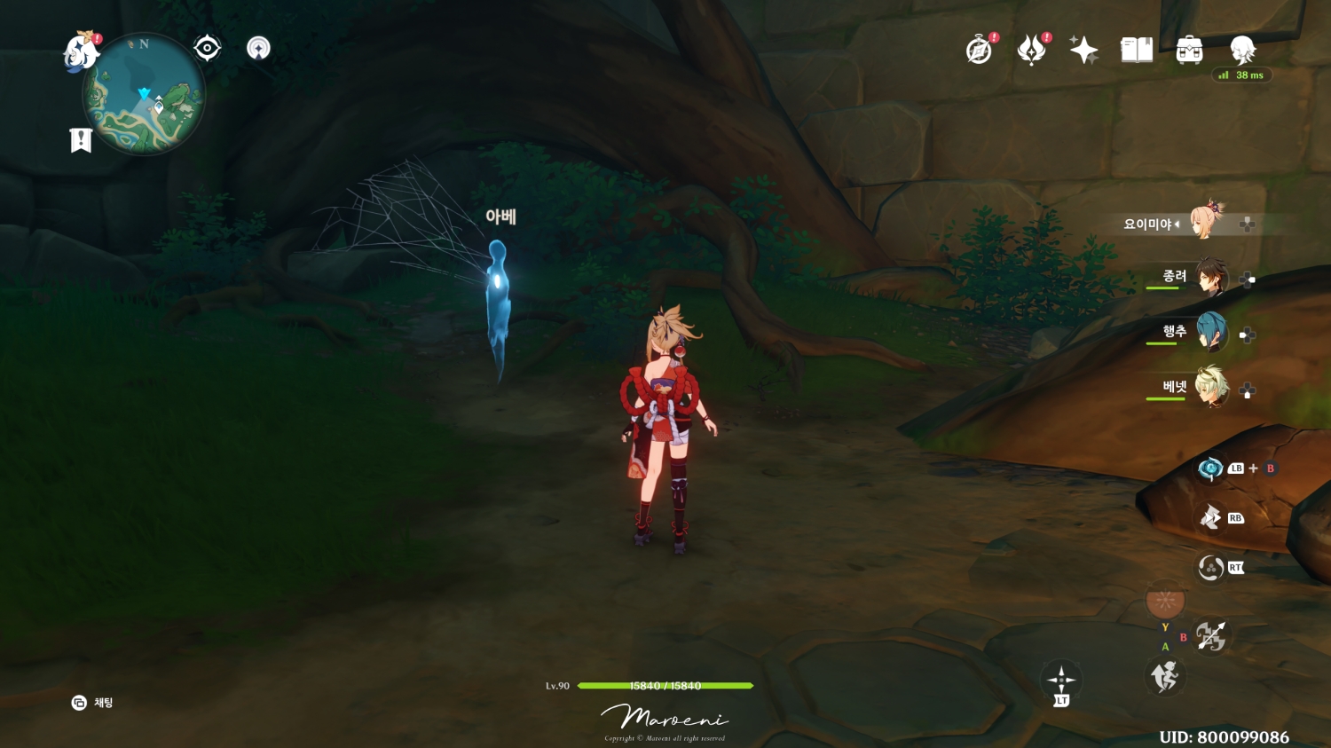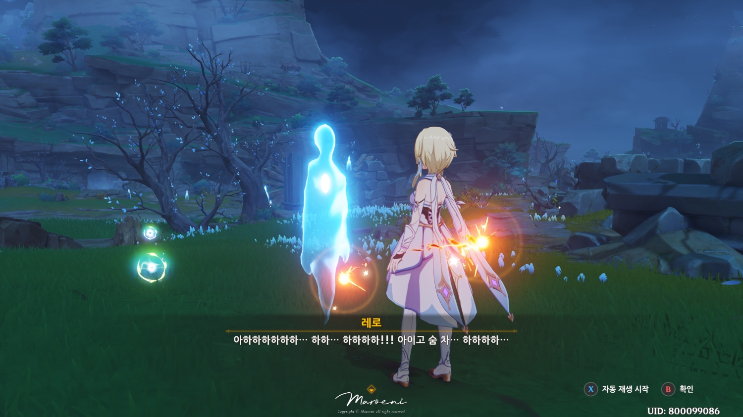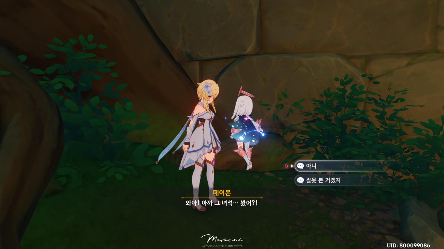 다시 이 장소를 방문해서 형광 버섯을 수집하게 되면 아베가 또다시 등장하는데, 다행히도 이번에는 사라지지 않습니다.
