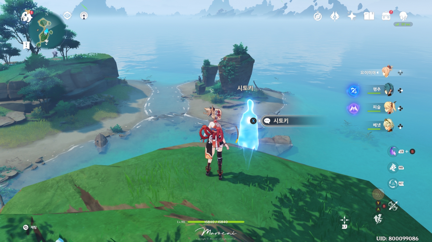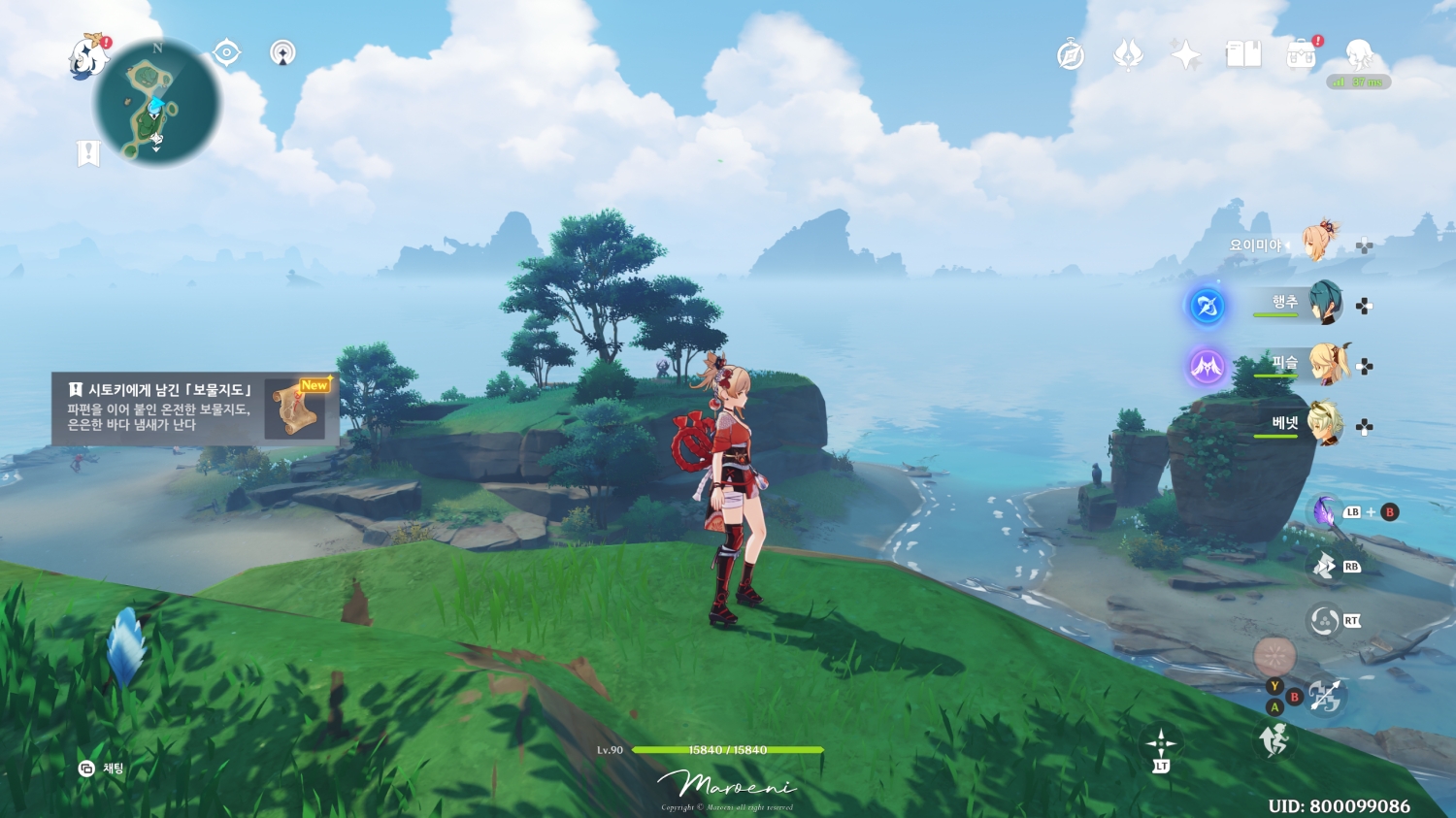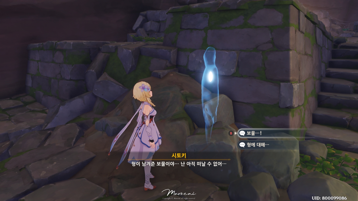 소라 4개를 획득한 후 사진의 위치로 이동하면 시토키가 기다리고 있는데 시토키에게 말을 걸면 보물지도 조각 4개를 시토키에게 남긴 보물지도로 바꿔줍니다.