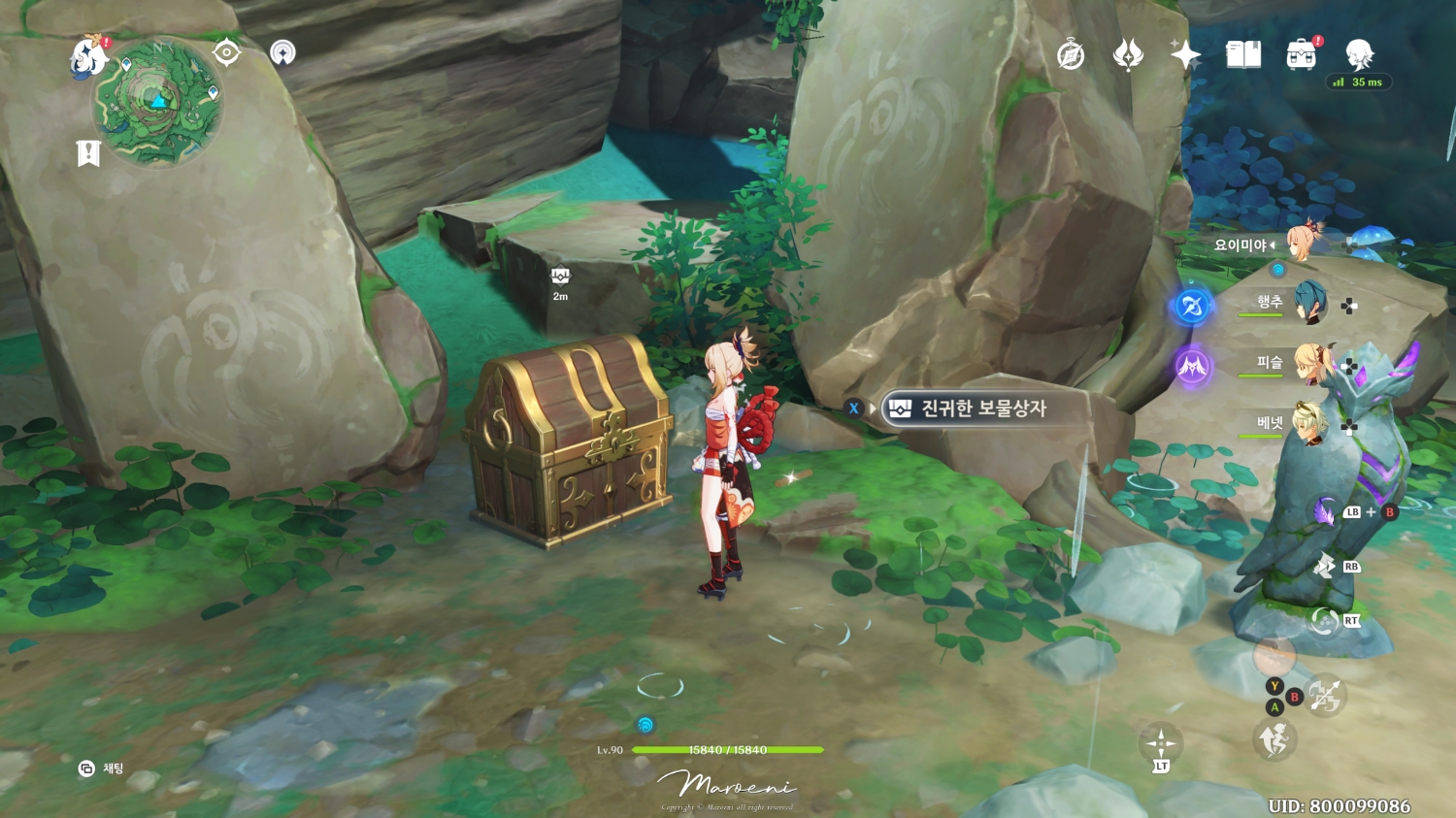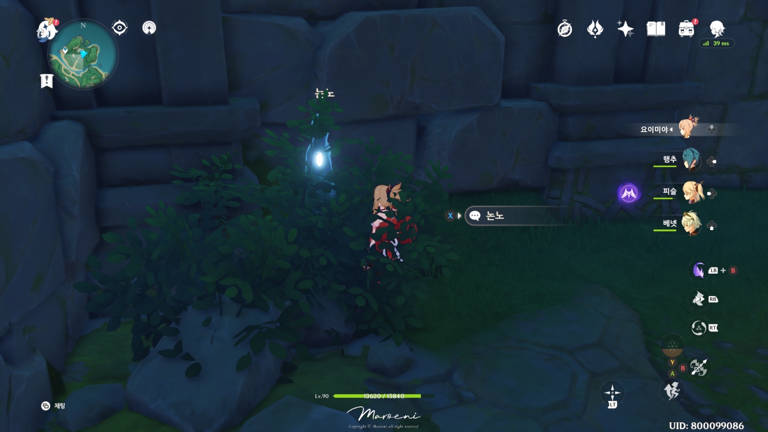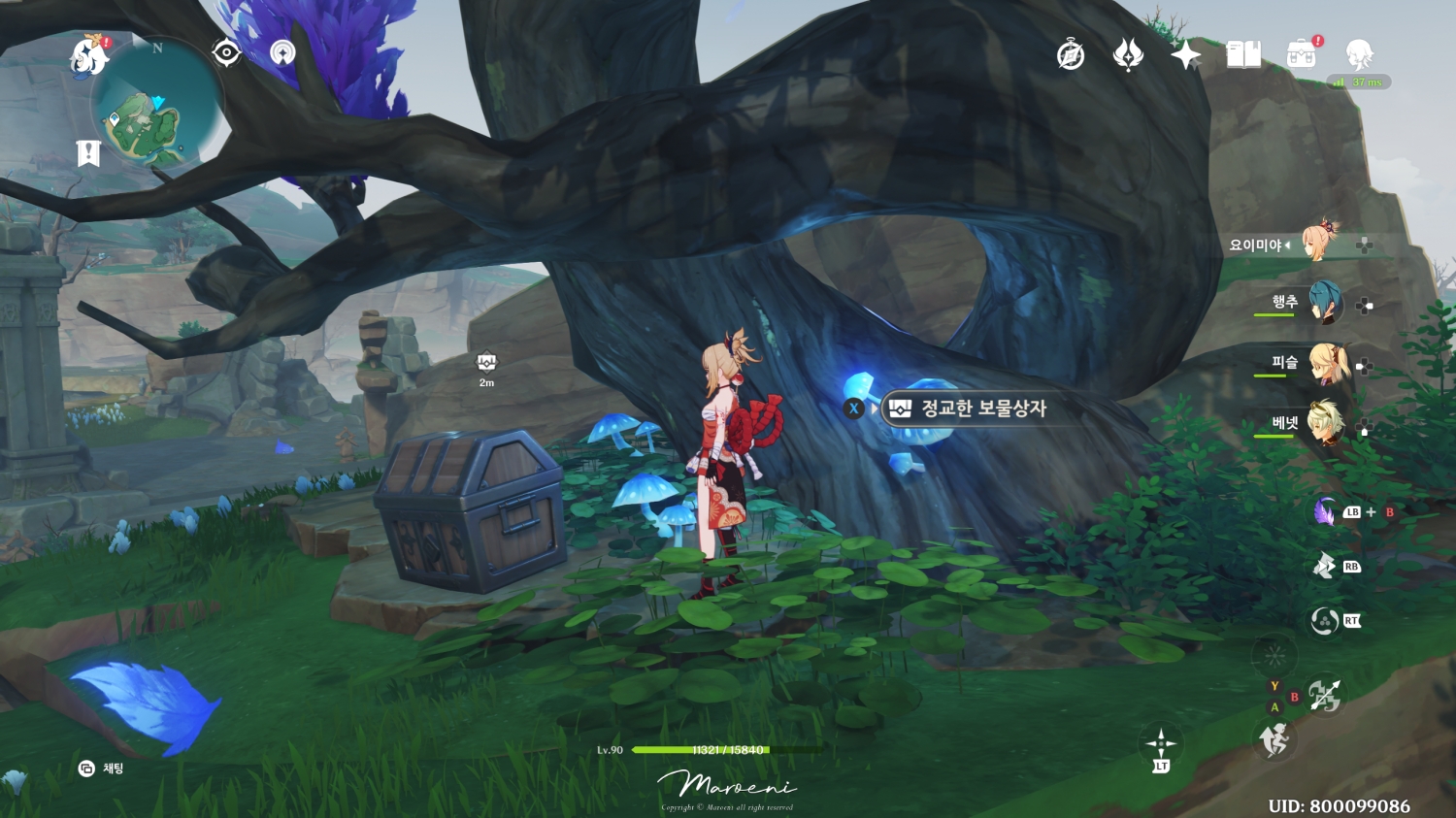 치라이신사를 돌아다니다 보면 1번 장소에서 논노라는 유령 NPC를 발견할 수 있는데, 이 NPC와 함께 숨바꼭질을 하다 보면 원석이 들어있는 정교한 보물상자를 획득할 수 있습니다. 논노가 숨어있는 위치는 지도에 표기해두었으니 순서대로 찾아가시면 됩니다.