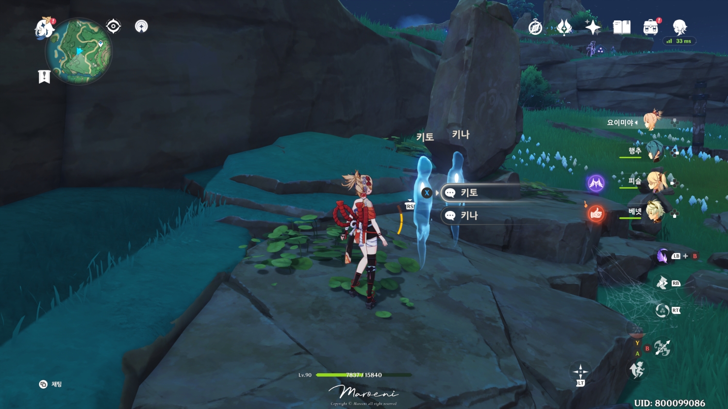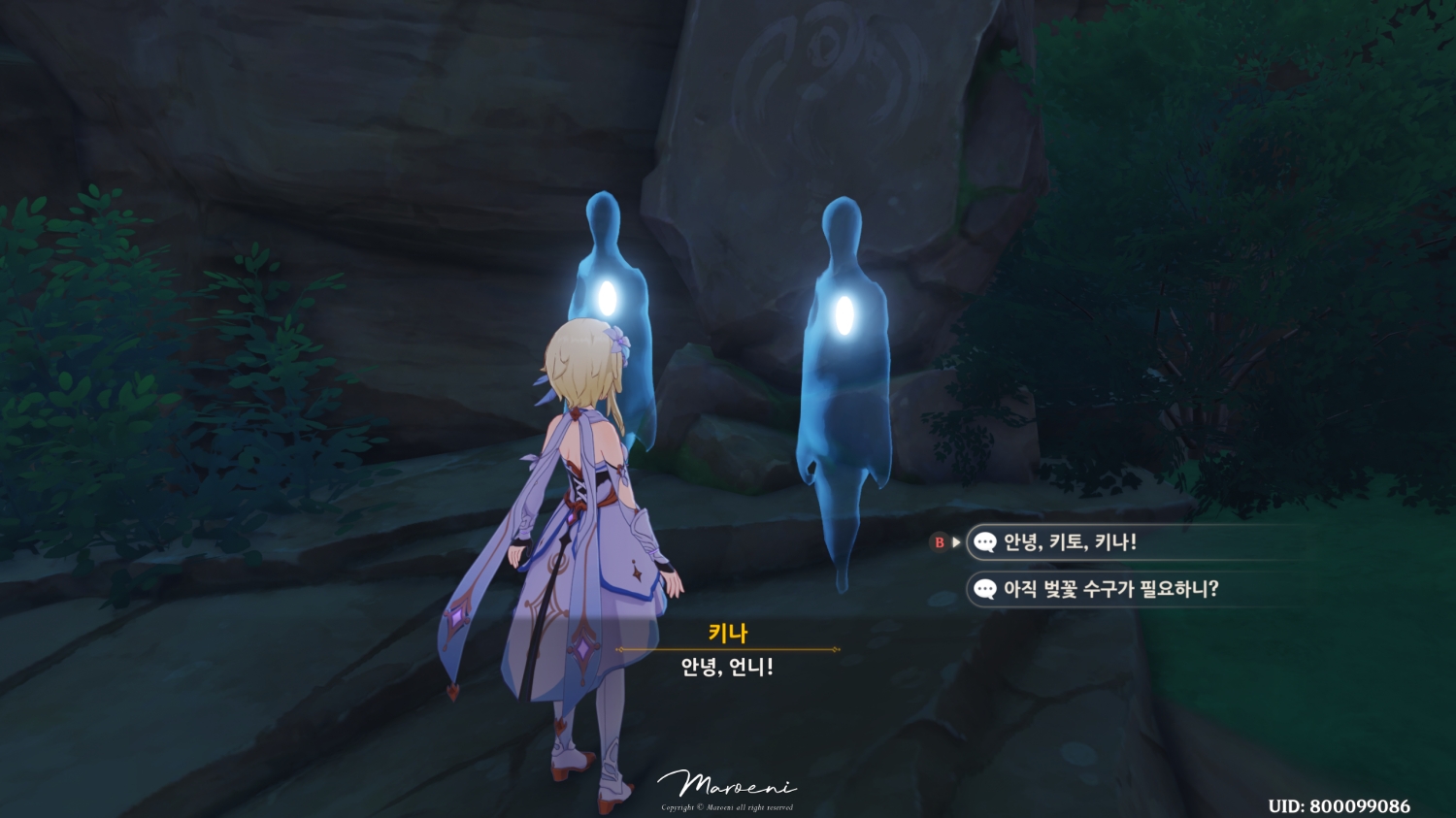 아우타케 들판 왼쪽에 있는 섬에서 키토, 키나라는 유령 NPC를 만날 수 있는데 이들에게 벚꽃 수구를 1개씩, 총 5회로 5개를 전달하기만 하면 되는 아주 간단한 기믹입니다. 한 번 전달하고 나면 키토 키나의 위치가 변경되기 때문에 아래의 사진을 참고하셔서 순서대로 이동해주시면 됩니다.