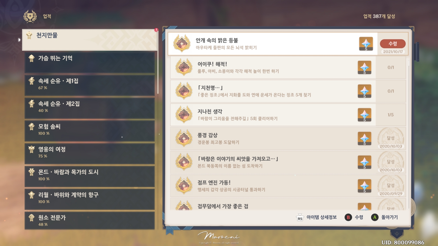 | 원신 연하궁 <영원의 입구> 주변을 조사해 단서 5개 찾기 (0) | 2022.01.05 |