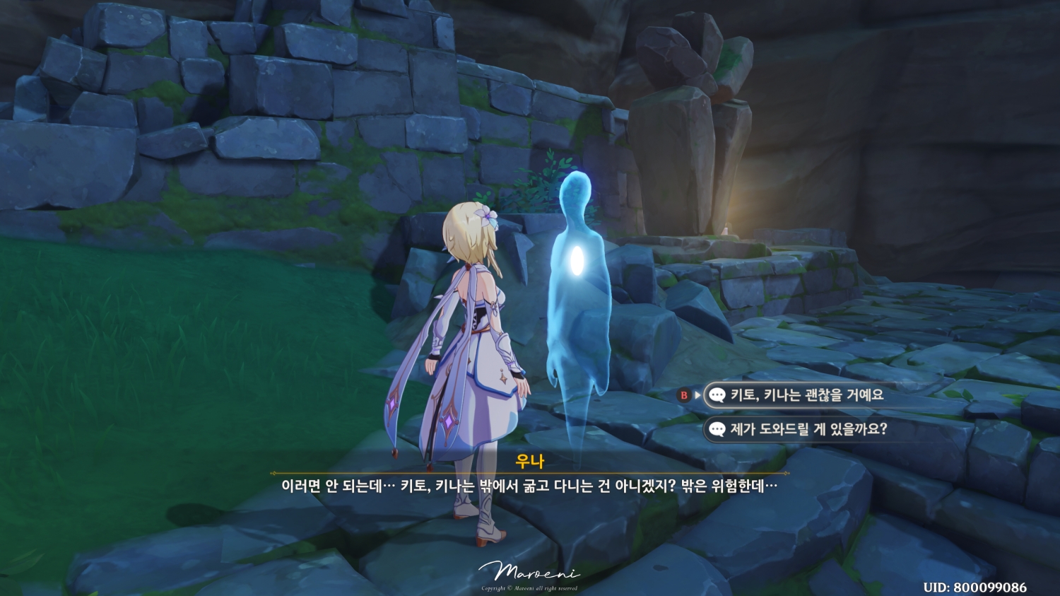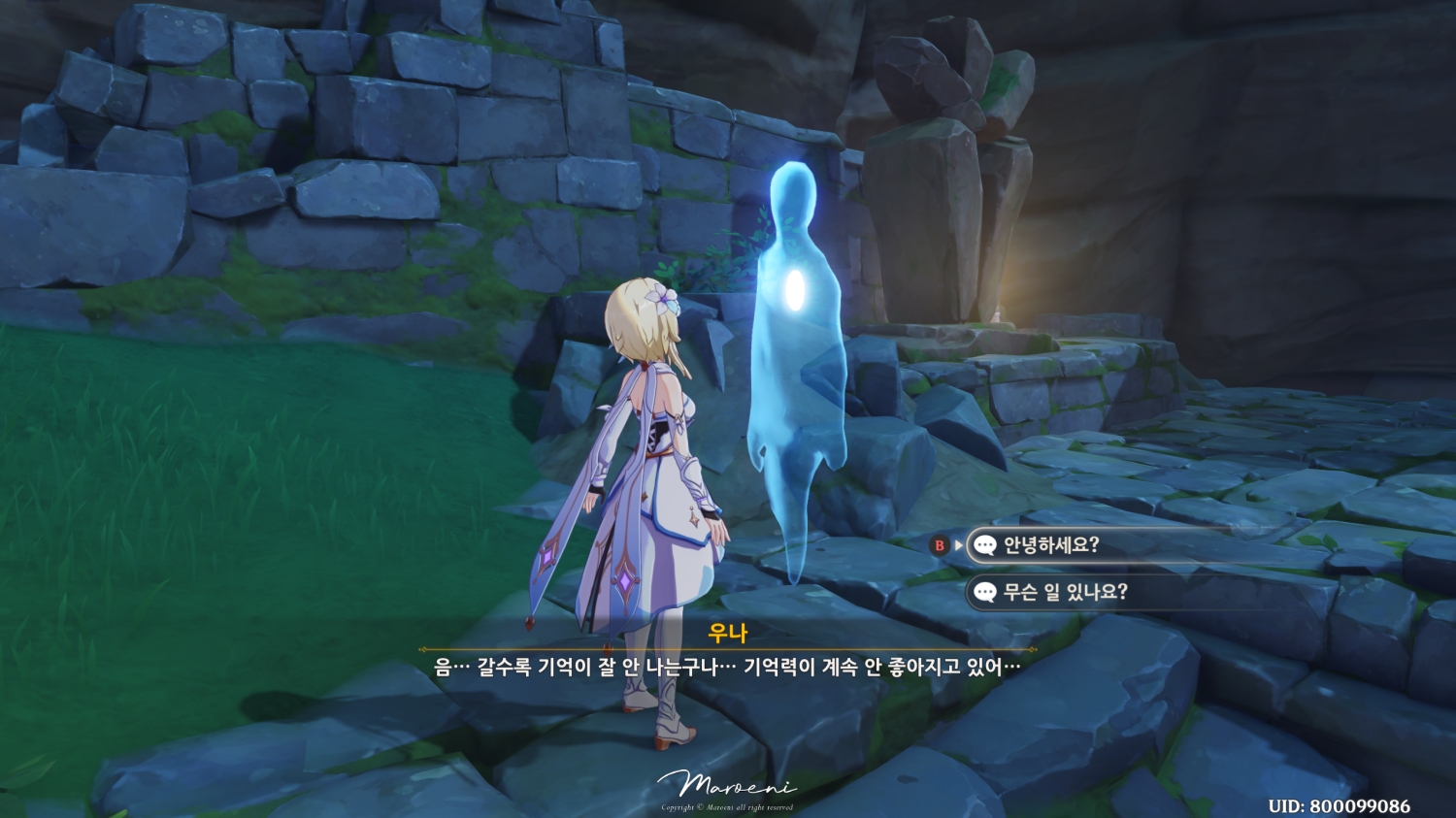 지도에 표시된 위치로 이동하면 우나라는 유령 NPC를 만날 수 있는데, 먼저 우나 기믹을 진행하기 위해서는 5일이라는 시간과 위에서 공략했던 것처럼 키토와 키나에게 벚꽃 수구를 전달하여 키토의 향낭이라는 최종 임무 아이템을 가지고 있어야만 합니다.