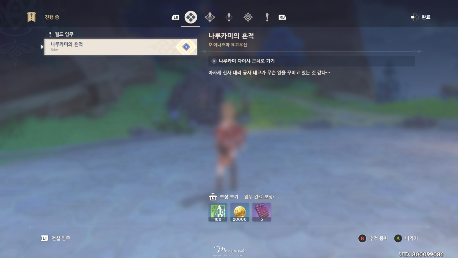 이번에 공략하는 퀘스트는 이나즈마 평판 임무 중 하나인 <나루카미의 흔적>입니다. 이 퀘스트는 선행퀘를 진행하지 않았을 경우 시작조차 불가능하니 참고하시길 바랍니다.