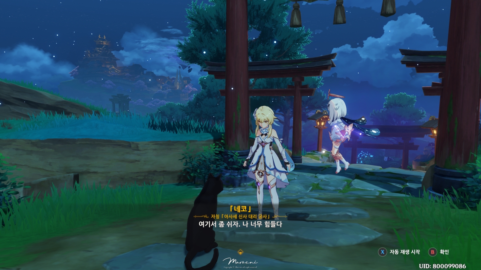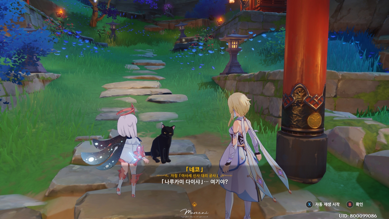 퀘스트는 심플합니다. 네코와 함께 나루카미 다이샤 부근에서 아사세 히비키라는 사람을 찾아오는 것인데.. 결론만 말하면 아사세 히비키는 찾을 수 없고, 그냥 대화만 하다가 다시 아사세 신사로 돌아오기만 하면 되는 퀘스트입니다..