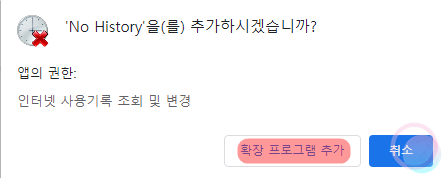 2) 크롬에 추가 버튼을 눌러준 후 확장 프로그램 추가 버튼을 눌러서 no history를 설치해줍니다.