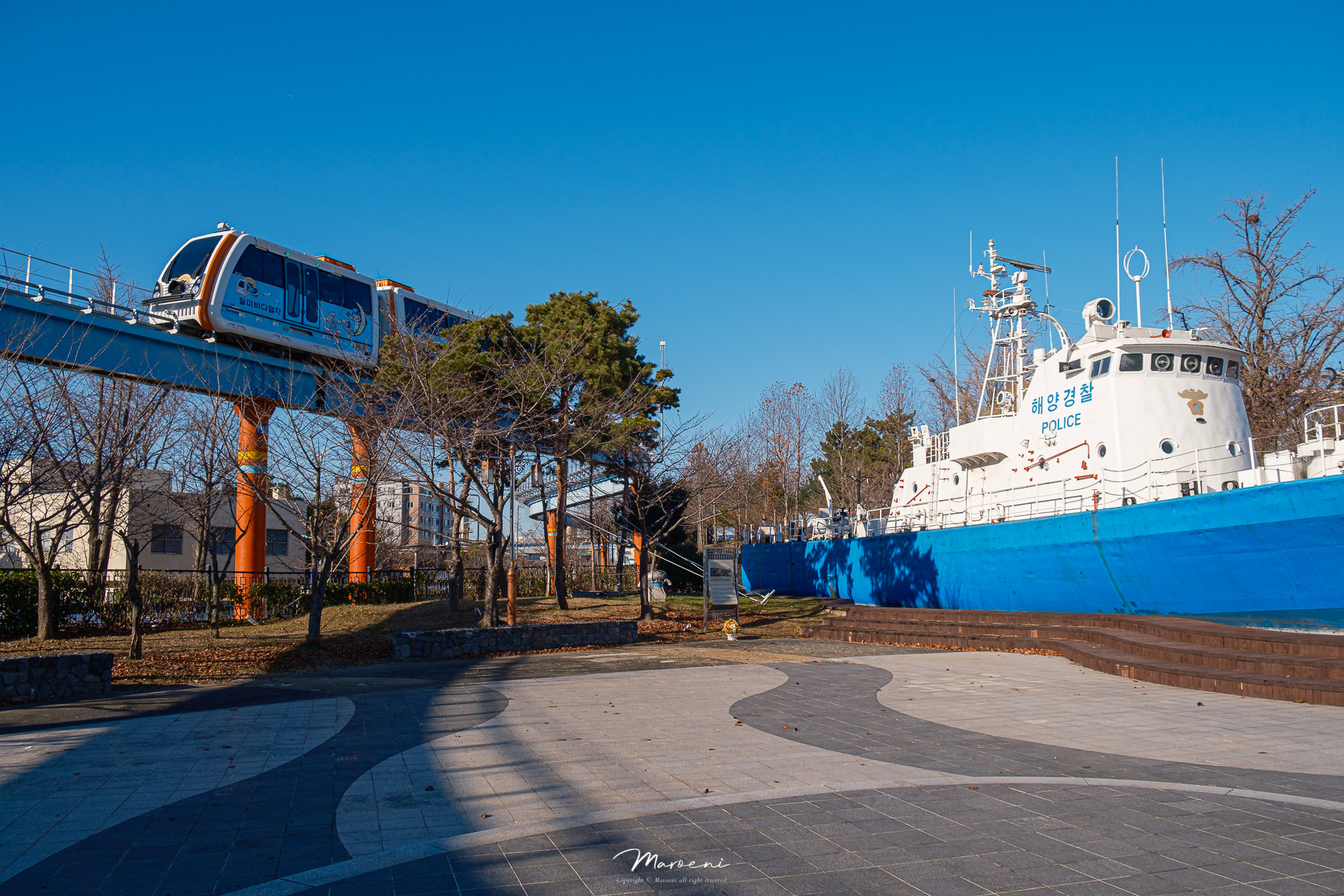월미공원에서 내려왔으니 월미도도 잠깐 둘러보기로 했다. 가는 길목에 해양경찰 기념비석과 함께 해양경찰의 멋진 함선이 보인다. 이때는 체력적으로도 바닥이 난 상태였는데 그 옆으로 조용히 지나가는 월미바다열차를 보니.. 다음부터는 이렇게 개고생을 하지 말고, 편리하게 살아가 보자!라는 생각이 들었다.