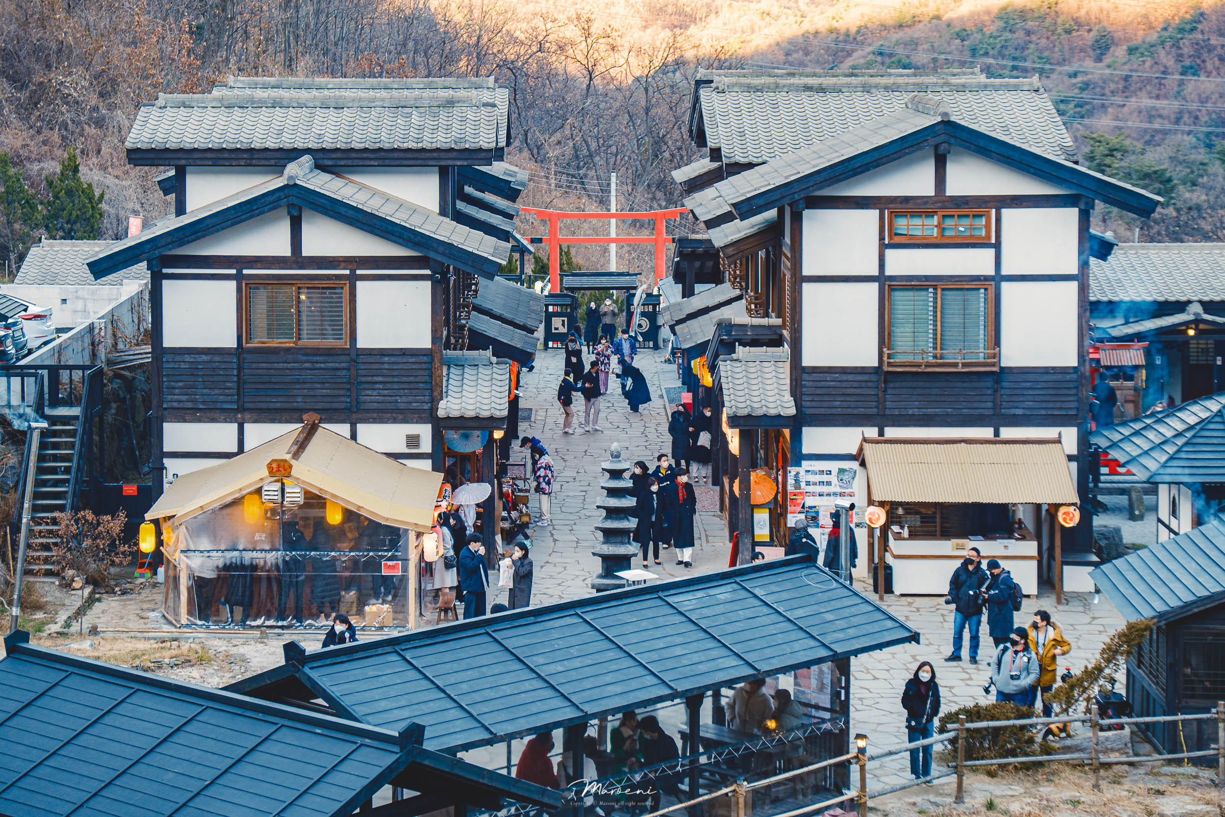 니지모리 스튜디오에는 료칸이 있다. 내가 직접 들어가 보지 못해서 내부는 알 수 없지만 일본 가정집을 리얼하게 구현을 해놓았다고 한다. 료칸 예약 요금은 최소가 50만원(입장, 주차, 조식 포함)부터 시작하는 듯..? 가격이 비싸서 진짜 온천수가 있는 건 아닌 걸까 하는 궁금증에 검색을 해보니깐 온천이 아니라 히노끼탕이 있다고 한다. 료칸 예약을 하지 못했던 나는 아쉬운 마음에 밖에서 셔터만 눌러본다.