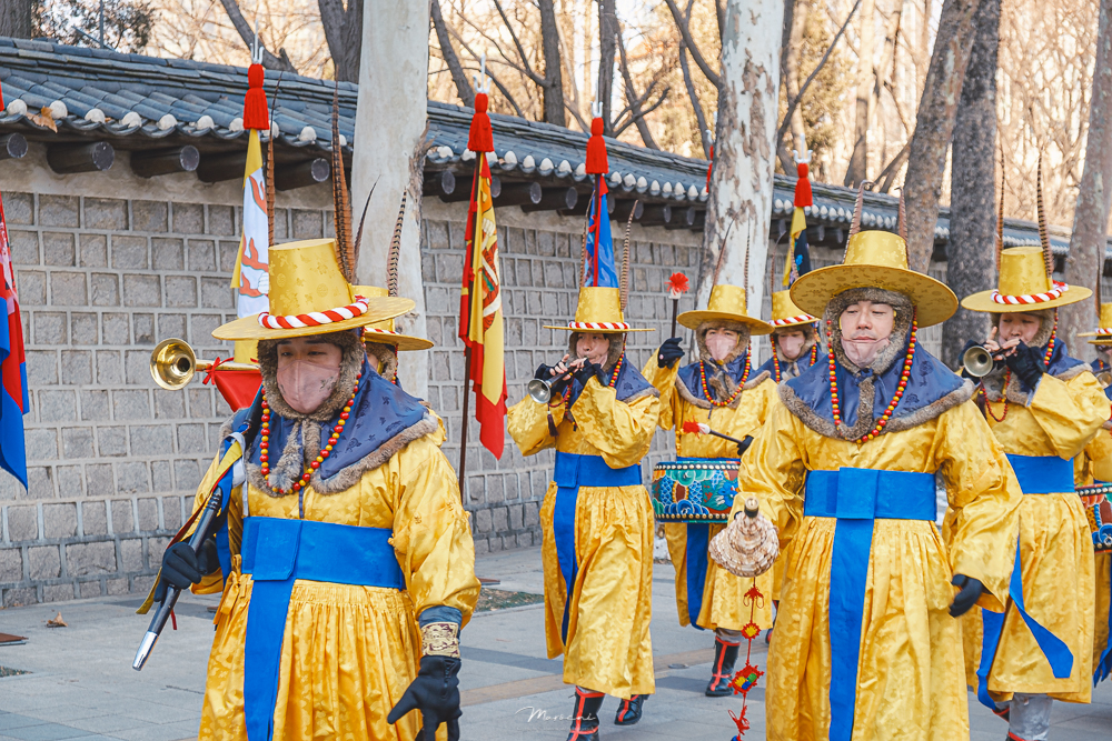 원래대로라면 덕수궁 대한문 앞에서 진행해야 했지만 대한문 입구에서 공사를 하고 있는지.. 사이드에서 진행하더라. 확실히 배경이 없어서 그런지 왕궁수문장교대의식 특유의 웅장함을 느낄 수는 없었다.