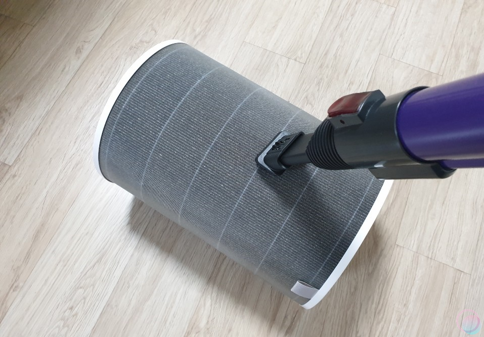 필터를 깨끗하게 사용하기 위해서 청소기에 솔을 결합하여 외부에 붙어있는 먼지를 한번 흡입해주었습니다. 평소에는 솔을 사용하지 않았는데, 이럴때에는 정말 유용한 것 같습니다.