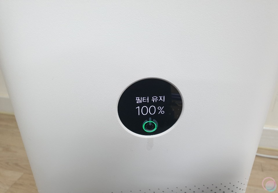 4) 전원을 다시 연결하여 미에어 3H를 켜보면 필터가 초기화 되어서 100%로 변경된 것을 확인할 수 있습니다.