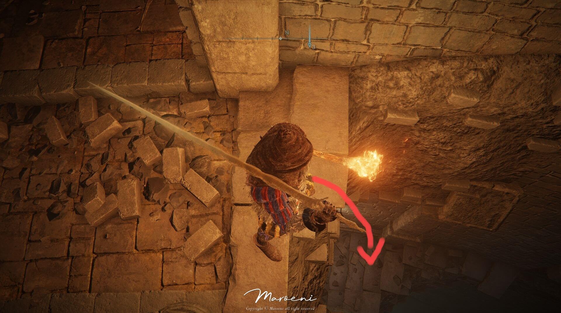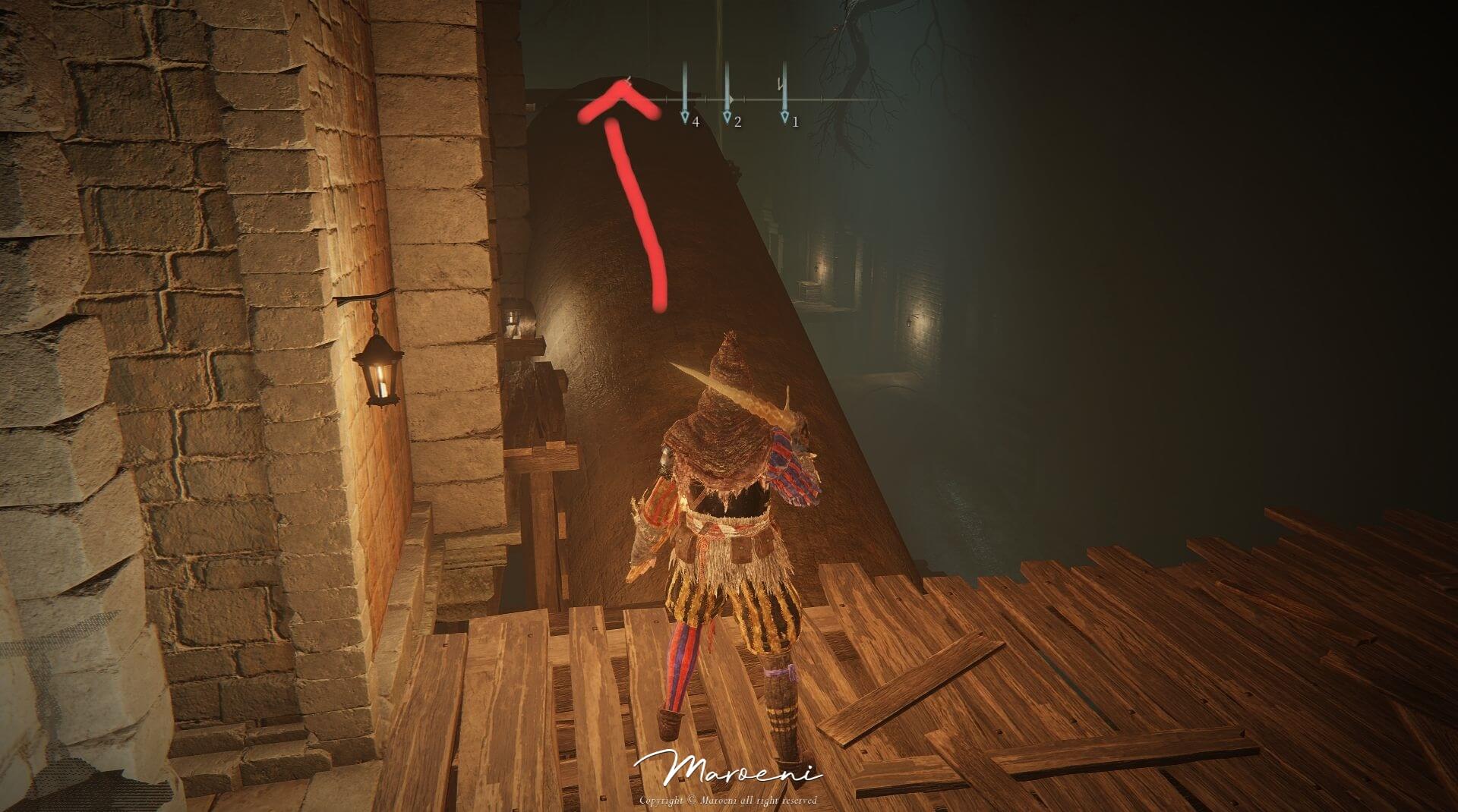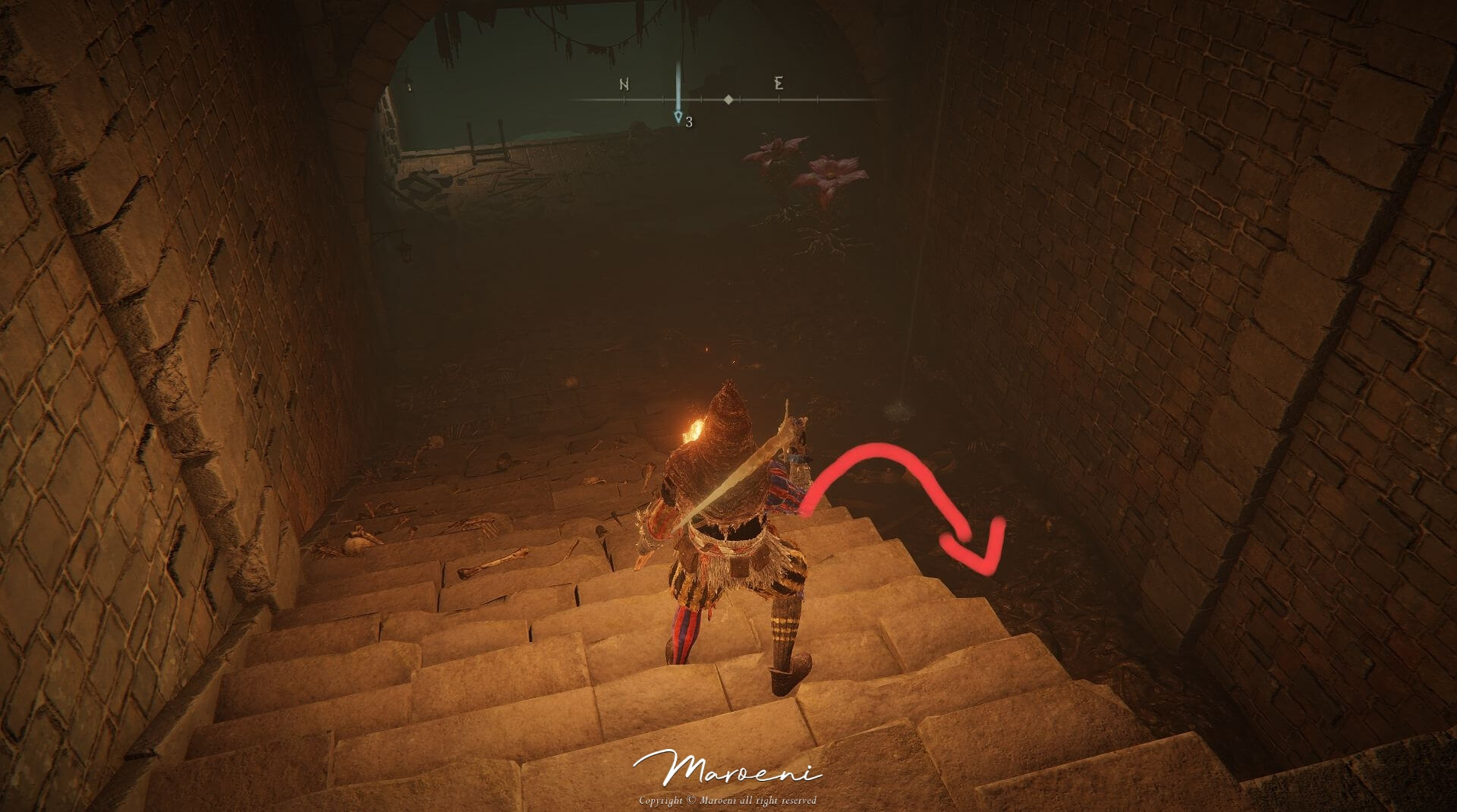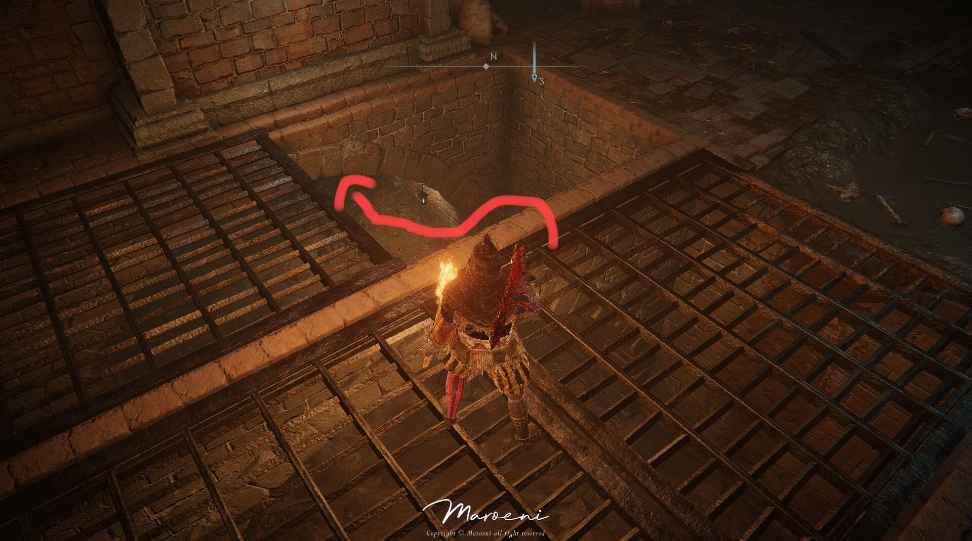 <미친 불의 왕>이라는 엔딩을 보기 위해서는 포도 퀘스트를 진행해야 하는데, 이 퀘스트를 진행하는 과정에서 버려진 대성당을 지나쳐야만 하니 미리 뚫어놓는 것이 좋다. 일단, 대변 먹는 자가 있는 감옥으로 가는 길에서 오른쪽으로 진행해준다.