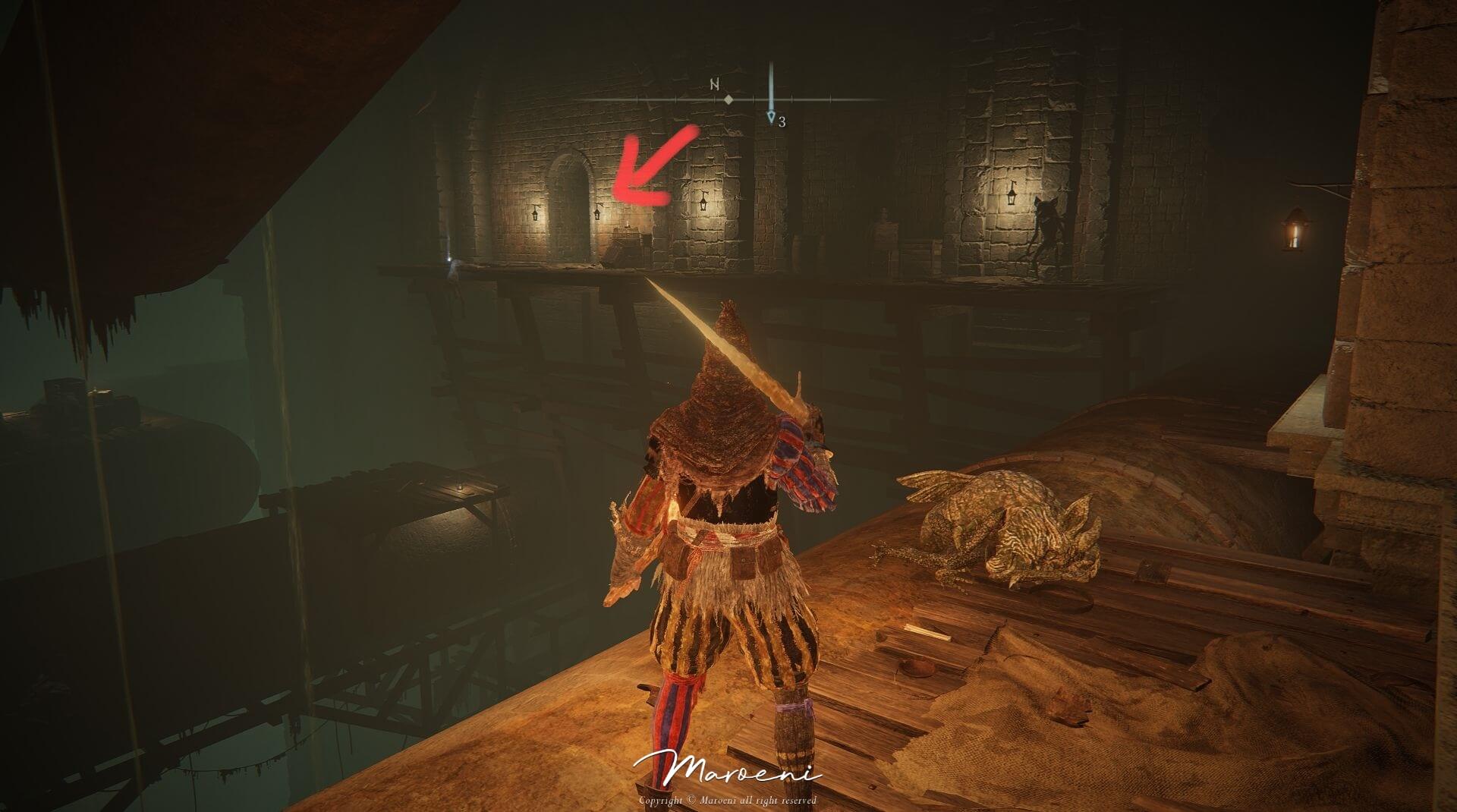 이곳으로 이동하면 대변 먹는 자가 암령으로 침입하는데.. 죽이면 '미에로스 검'이라는 아이템을 얻을 수 있다. 다시 원탁으로 돌아가 말을 걸면 다시 도읍 지하수도에 있는 자신을 축복해달라고 한다.