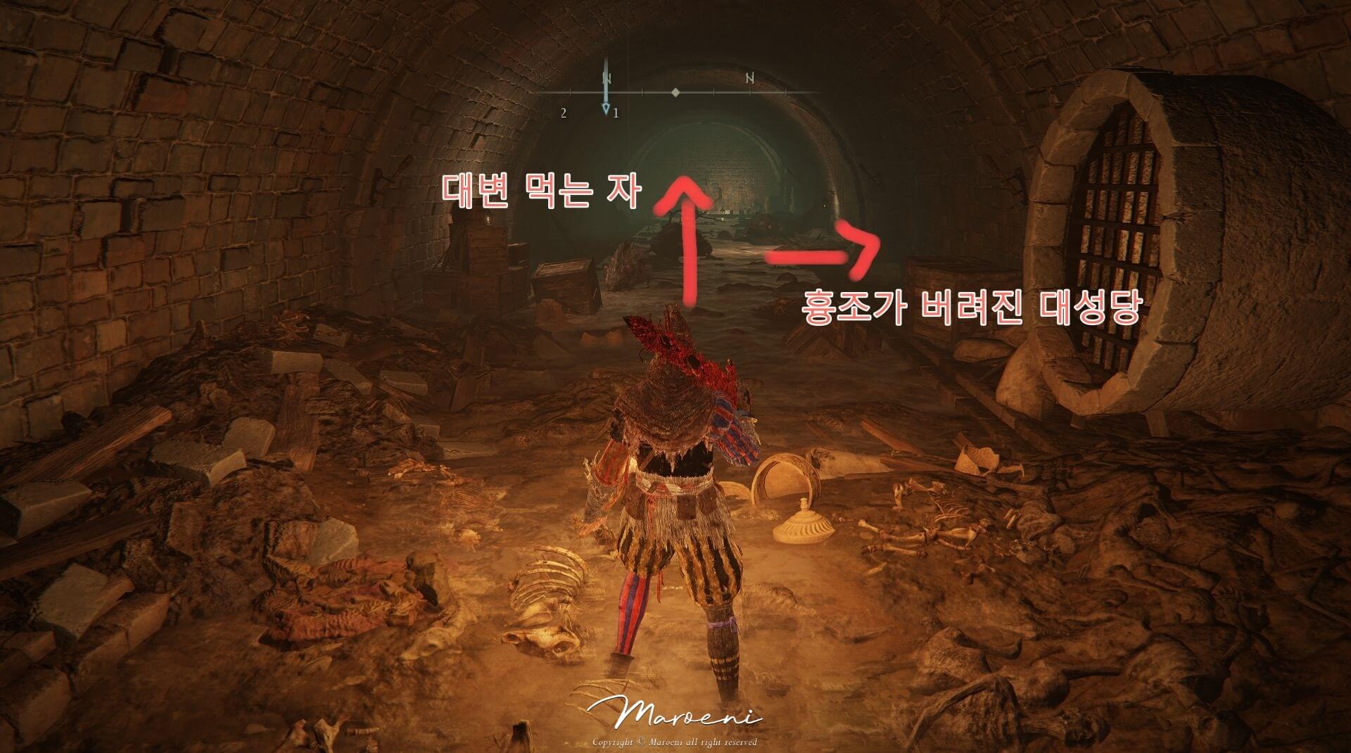다시 지하대로 옆 축복으로 이동하여 똥쟁이가 있던 곳으로 가면 묶여 있는 대변 먹는 자를 발견할 수 있다.