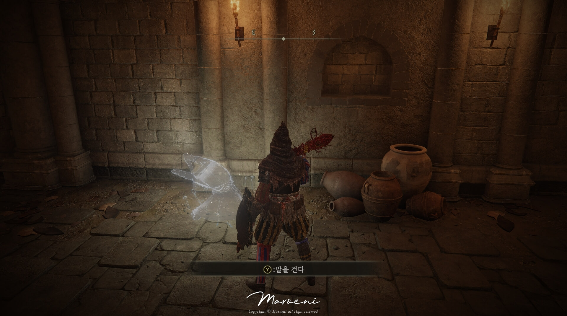 게임을 진행하다 보면 원탁에서 이렇게 지저분하게 생긴 암령을 만나게 된다. 이 암령의 이름은 '대변 먹는 자'라는 이름으로 엘든링과 관련이 있는 매우 중요한 NPC이다. 우선 그에게 말을 걸면