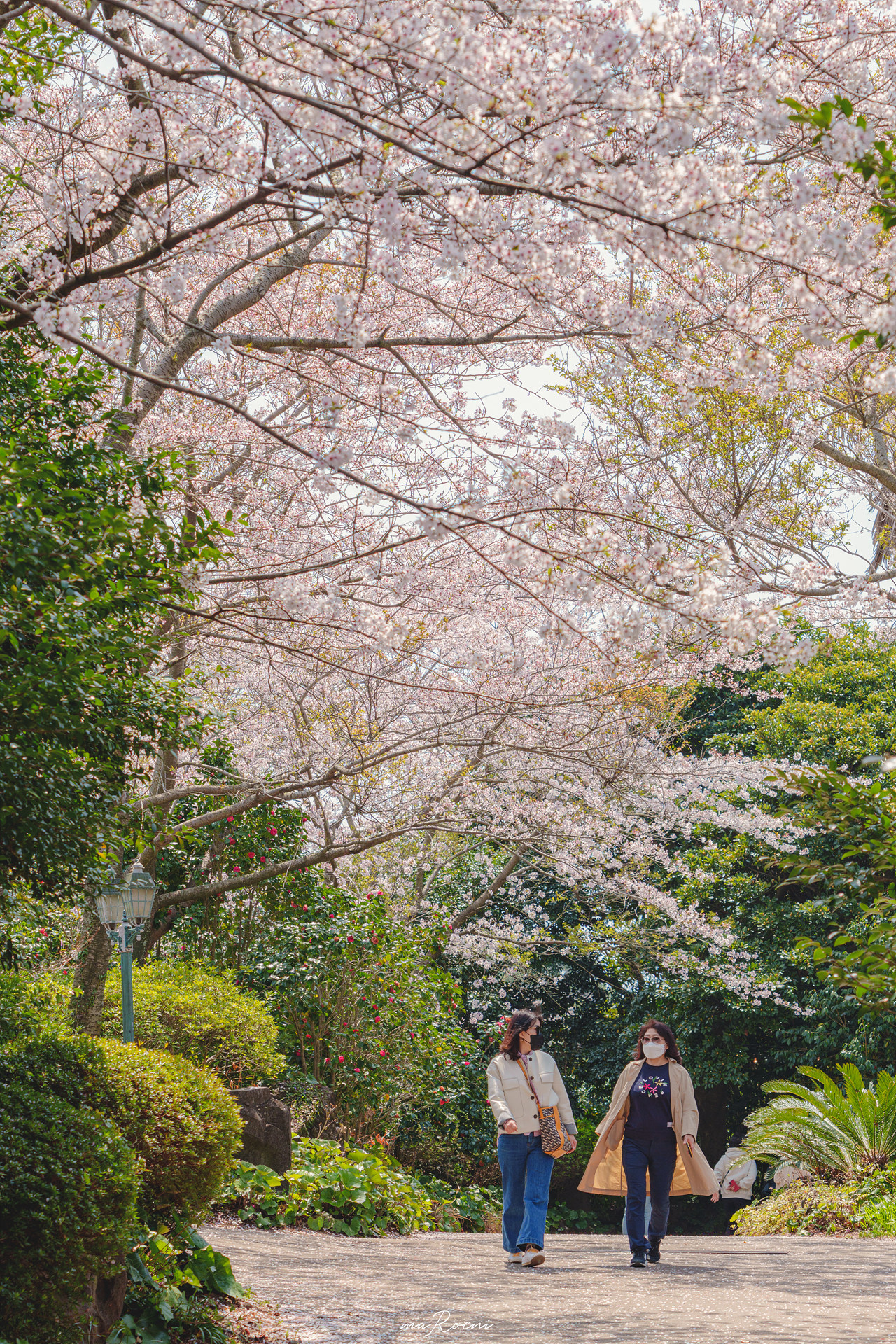 온실을 지나면 본격적인 벚꽃길이 시작된다. 이래도 되나 싶을 정도로 만개한 벚꽃과 떨어지는 벚꽃잎은 카멜리아 힐 산책로를 분홍빛으로 물들인다.