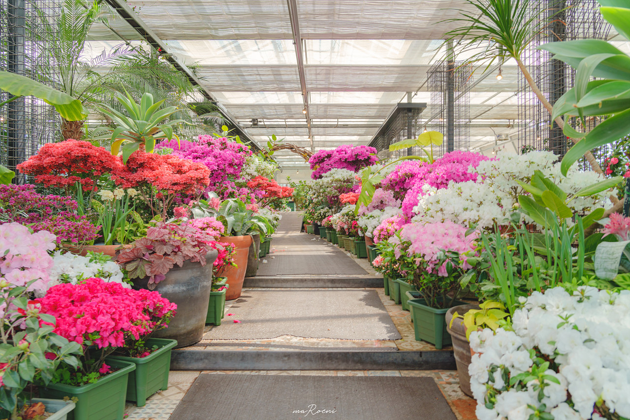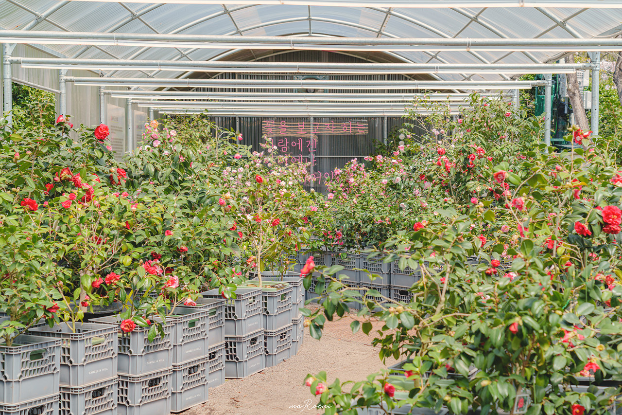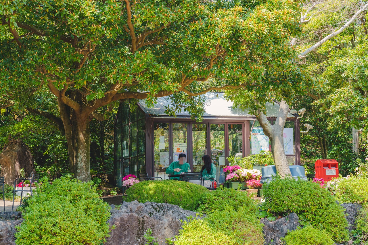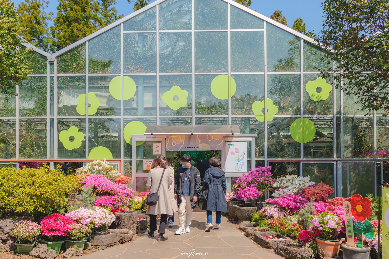 제주도 카멜리아 힐은 총 3개의 온실이 있다. 첫 번째 온실과 두 번째 온실은 꽃들을 구경할 수 있는 온실이며, 세 번째 온실은 카페가 있는 온실로 커피를 마시며 꽃들을 구경할 수 있다.