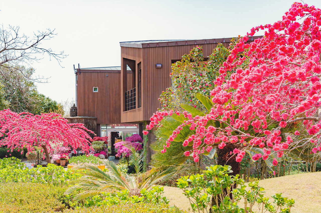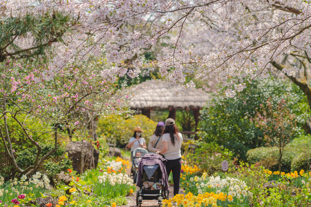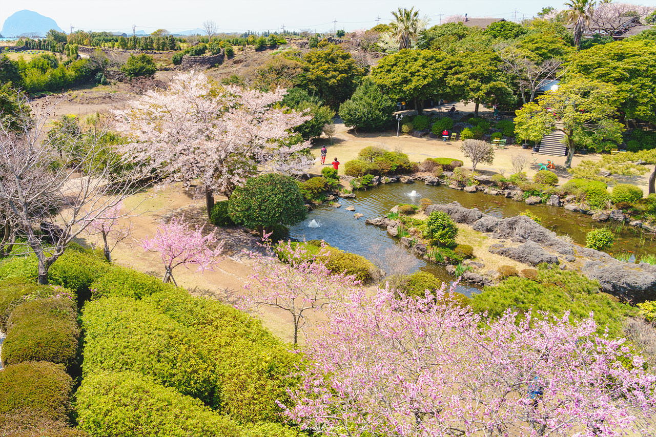 동백꽃과 벚꽃이 한가득 피어있는 제주도 카멜리아 힐