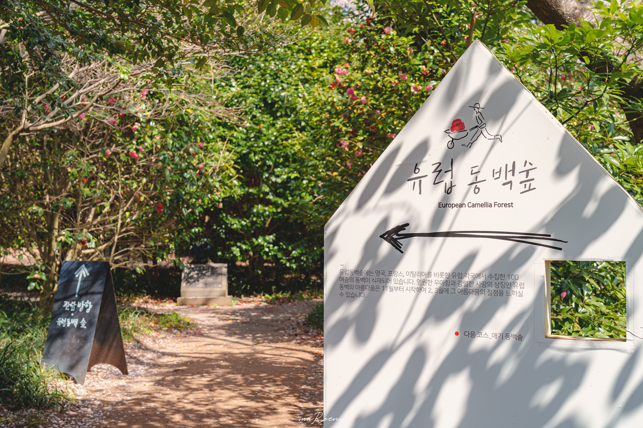 입장권을 내고 들어가면 카멜리아 힐의 그림 같은 풍경이 눈앞에 펼쳐진다. 맨 처음으로 만나는 코스는 수목원 산책로. 가이드북이 있어야 하는 게 아닌가? 싶었는데, 곳곳에 배치된 화살표만 따라가도 관람하는데 문제가 없어 보였다.