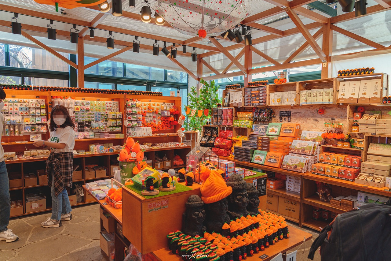 입구에서부터 볼 수 있는 기념품샵에서는 제주도 특산물인 귤 아이템들이 한가득이다. 감귤 모자가 조금 탐났긴 했지만 혼자서 쓰고 다닐만한 깡이 없기에.. 그냥 눈으로만 구경했다.
