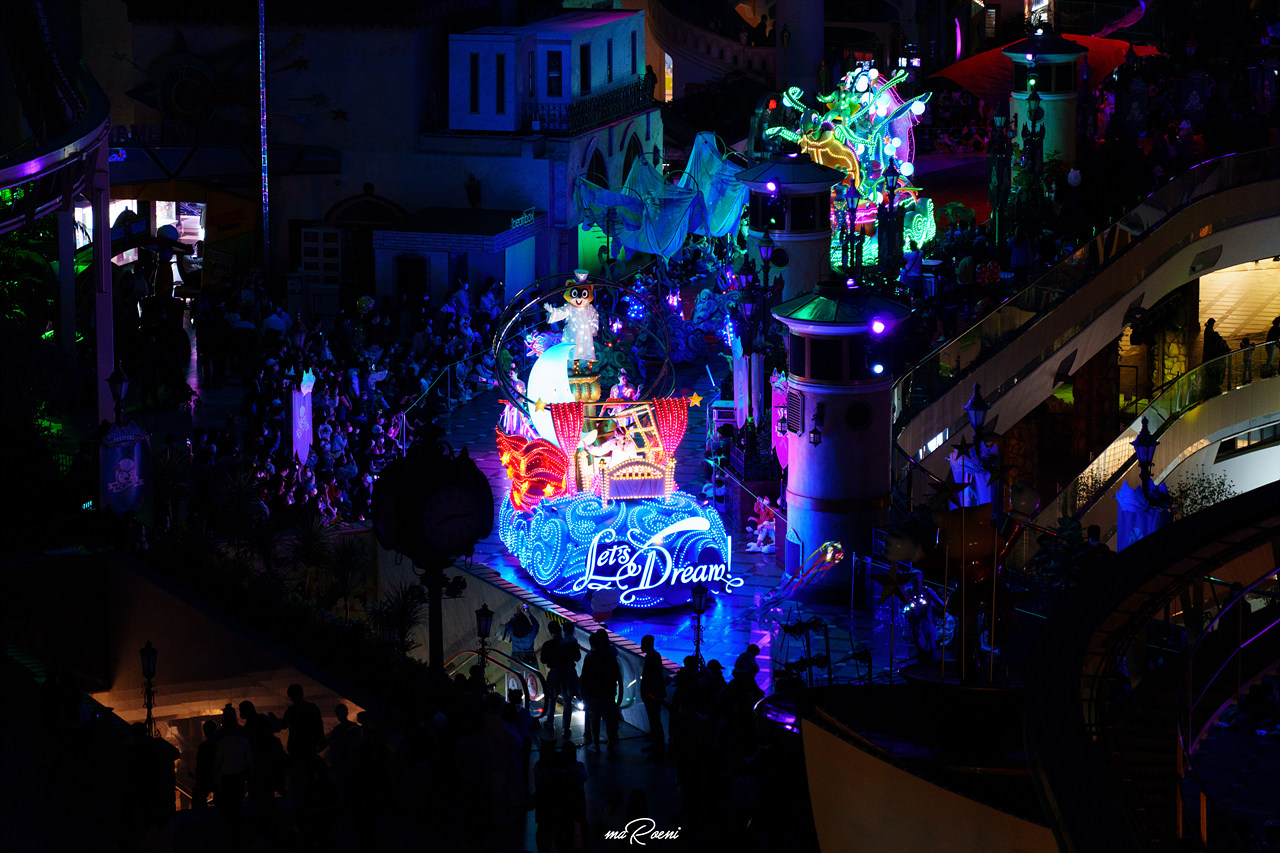 꼭 주간에만 쓰라는 법은 없다. 어느 정도 타협만 본다면 야간에도 충분히 24105G를 사용할 수 있다. 물론 최대개방 조리개 값이 F4밖에 되지 않기에 실내와 야간에 취약한 건 사실이다. 감도를 어느 정도 올려줘야만 만족할만한 사진을 건질 수 있는데, 롯데월드 야간 퍼레이드 때 삼각대 없이 105mm에 조리개 F4, ISO 3200, 셔터 속도 1/60 정도를 주니 이런 사진이 나왔다. 이보다 더 어두운 환경이라면 삼각대는 필수다.