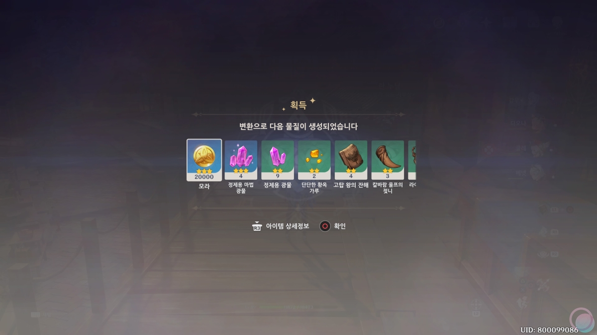 게이지를 다 채우고 나면 신병의 휘장 150개가 다음과 같은 아이템으로 변환되었습니다. 얼음 원소를 사용하면 얼음 관련 육성 아이템이 나오는 줄 알았는데.. 진짜로 랜덤인가봅니다.