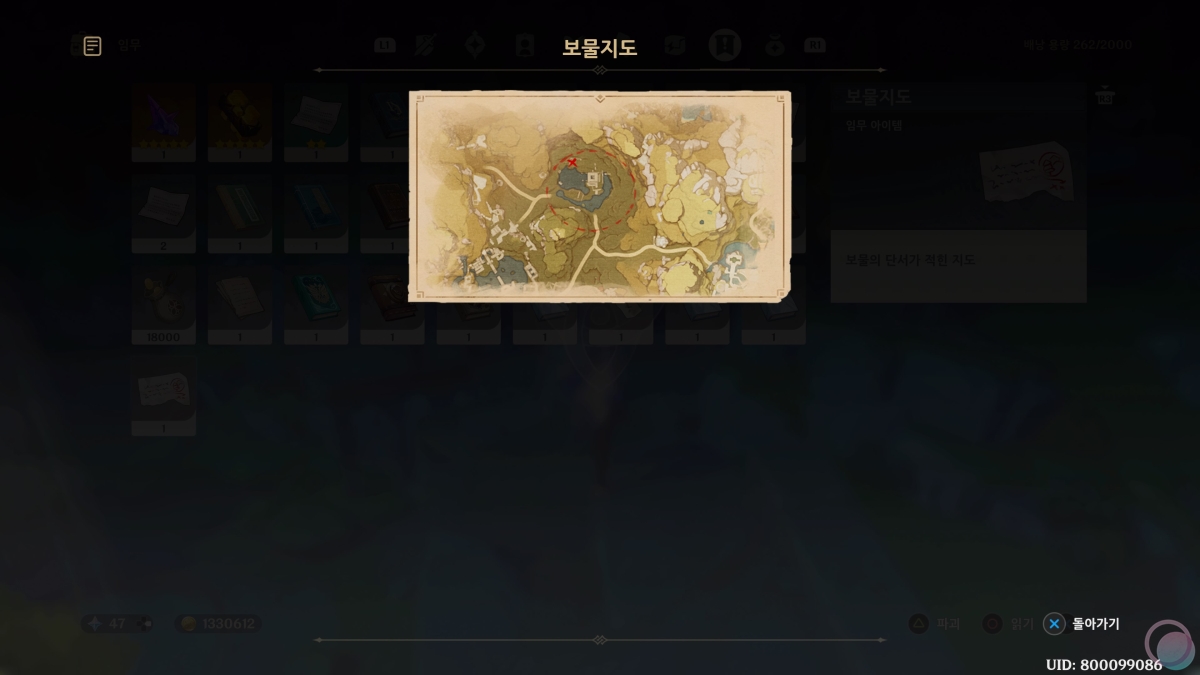 총 세 곳이 표시되는데 두 곳에서는 보물상자를 획득할 수 있고 큰 나무 아래에서는