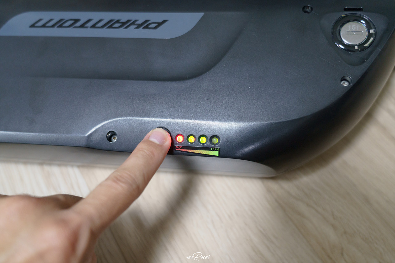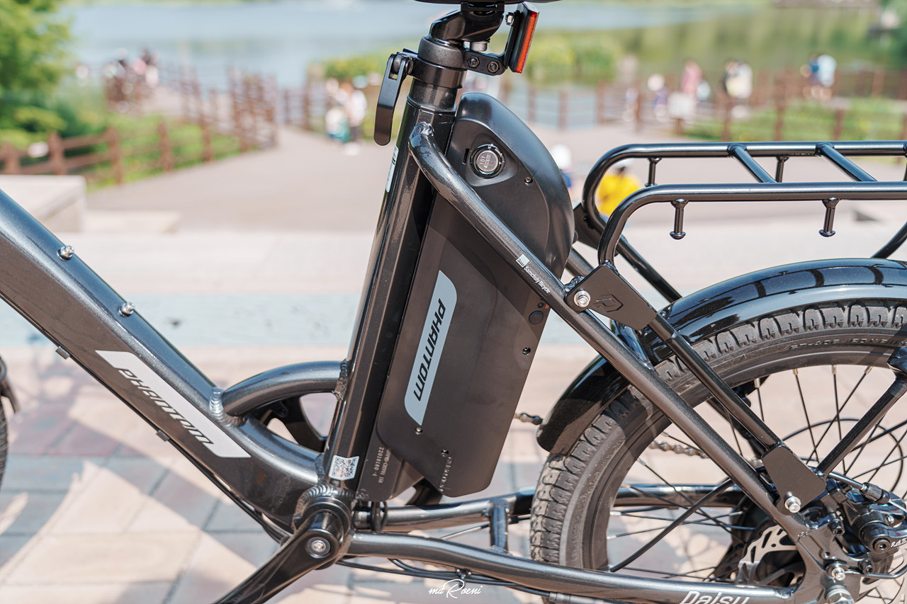 가장 중요한 배터리. 팬텀 데이지는 팬텀 Q SF 배터리와 사양은 똑같다. 둘 다 350W이고 완충 시간 역시 같기 때문에 뭐가 더 좋다고는 말할 수 없다. 하지만 탈착 방식이 다르다. 팬텀 Q SF는 안장 자체가 배터리이지만, 팬텀 데이지는 안장 뒤에 물통같이 생긴 배터리가 달려있는데 이게 배터리다.