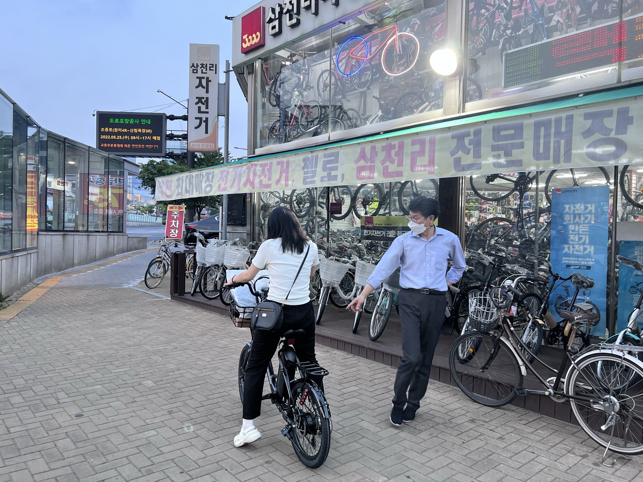 위의 포스팅을 보면 알겠지만 팬텀 Q SF 모델 자체가 안장 높이를 내릴 수는 있지만 최소 설정 높이 이하로 내릴 경우에 배터리가 땅에 닿아 쓸릴 수 있기에 내리는건 불가능하다고 볼 수 있다. 여자친구가 불편하다는데 어쩌겠는가? 손해를 보면서 중고로는 팔기 싫기에, 팬텀 Q SF는 내가 타고 여자친구에게 다른 전기자전거를 선물하기로 했다. 그래서 다시 삼천리자전거 부천중부점을 찾아갔다.