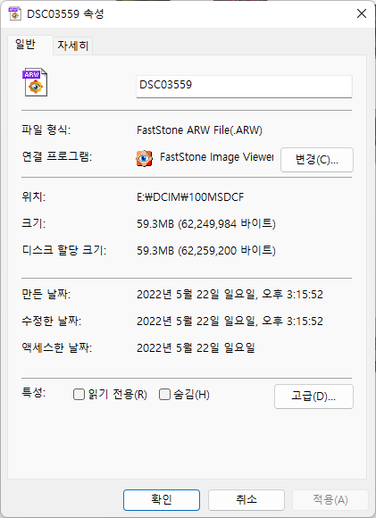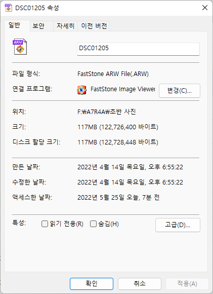 A7R4A는 고화소다. 6,100만 화소로 해상도가 무려 9504x6336다. 사진 전문가들도 A7R4A의 6천만 화소가 제공해주는 용량이 부담스럽다고 하던데 실제로 내가 사용을 해보니 큰 해상도만큼 용량도 어메이징했다. A7R4A는 RAW 저장방식이 압축 / 비압축 밖에 없는데, 압축으로 저장할 경우 60MB, 비압축으로 저장할 경우 용량이 무려 120MB다.