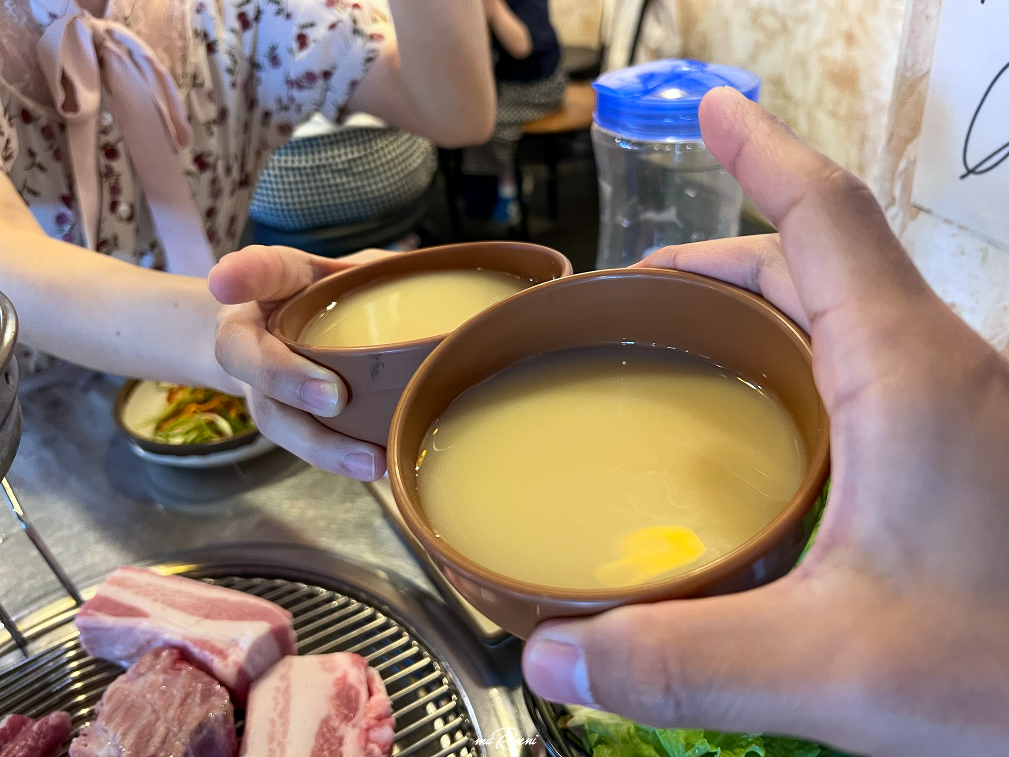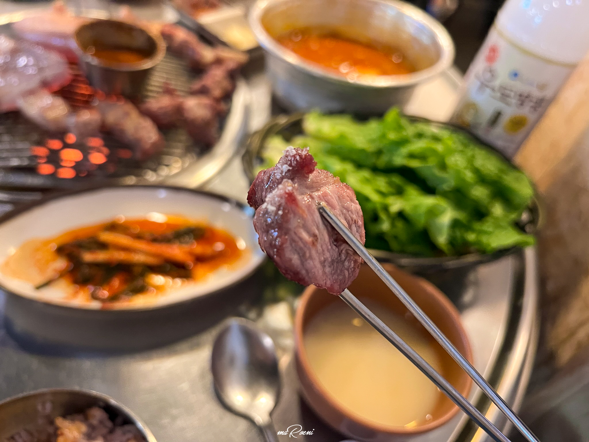 연탄불 위에서 지글지글 끓던 멜젓도 이제 먹을 때가 된 것인지, 직원분께서 꺼내 주셨다. 고기를 한점 집어서 멜젓을 듬뿍 찍어먹어 봤는데, 솔직히 내 취향은 아니었다. 내가 자주 가는 고기집의 멜젓은 후가공이라고 해야 하나? 뭔가를 더 첨부해서 달달하면서 짭쪼롬하니 맛이 참 좋았는데, 여긴 네이티브 멜젓이라 그런지 짜면서 비린맛만 났다.