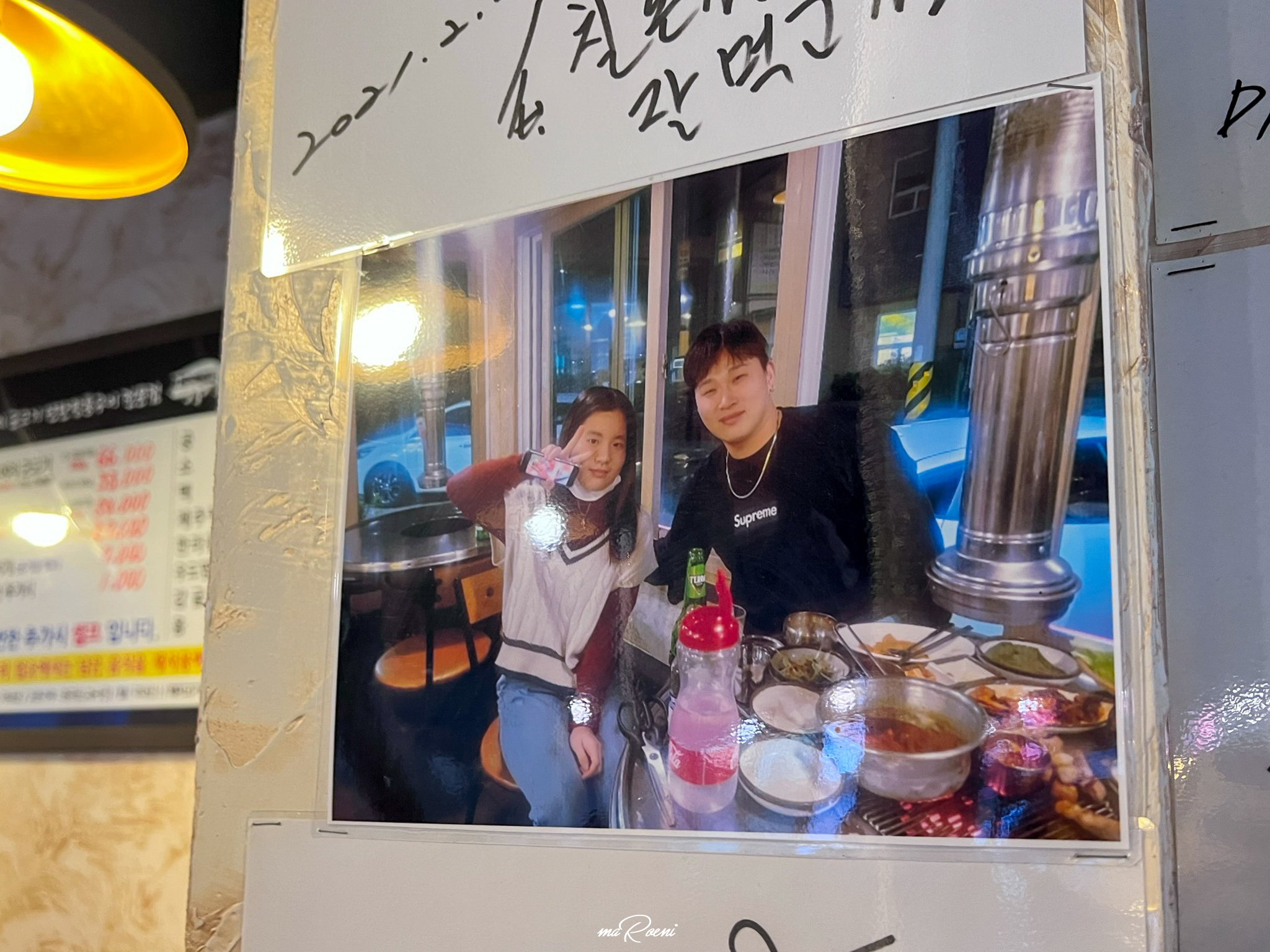 밖에서는 사람이 그렇게 많지 않아 보였는데, 실내에는 사람들이 은근 많이 있더라. 그리고 우리가 앉았던 자리에는 유명인사들의 친필 사인이 전시되어 있었는데, 나름 고기에 진심이라고 하는 스윙스가 이곳에 다녀간걸 보니, 아직 먹지도 않았는데 벌써부터 맛이 보장되는 것 같았다.