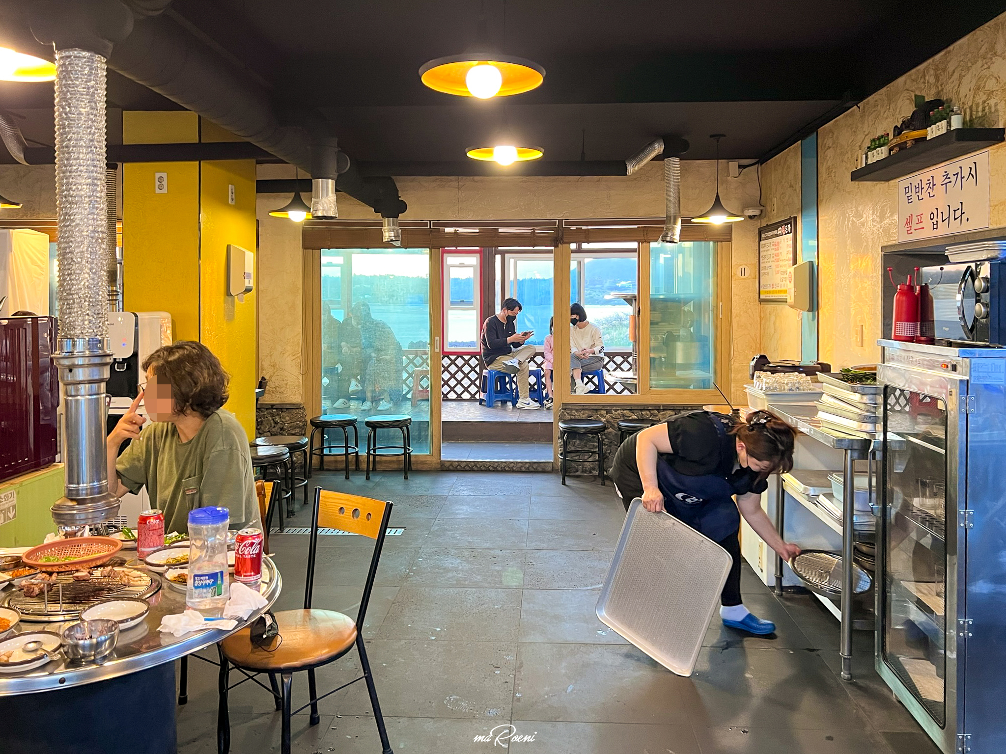 오후 5~6시쯤 되니깐 표선해수욕장에서 놀던 사람들 + 근처 리조트에서 숙박하는 사람들이 몰려오기 시작!! 조용했던 식당이 갑자기 웨이팅은 기본에 주차장까지 만석ㄷㄷ; 참 이상한게 이 주변에 흑돼지고기를 판매하는 식당들이 많은데도 불구하고, 유독 칠돈가만 이렇게 사람들이 몰리는 분위기다.