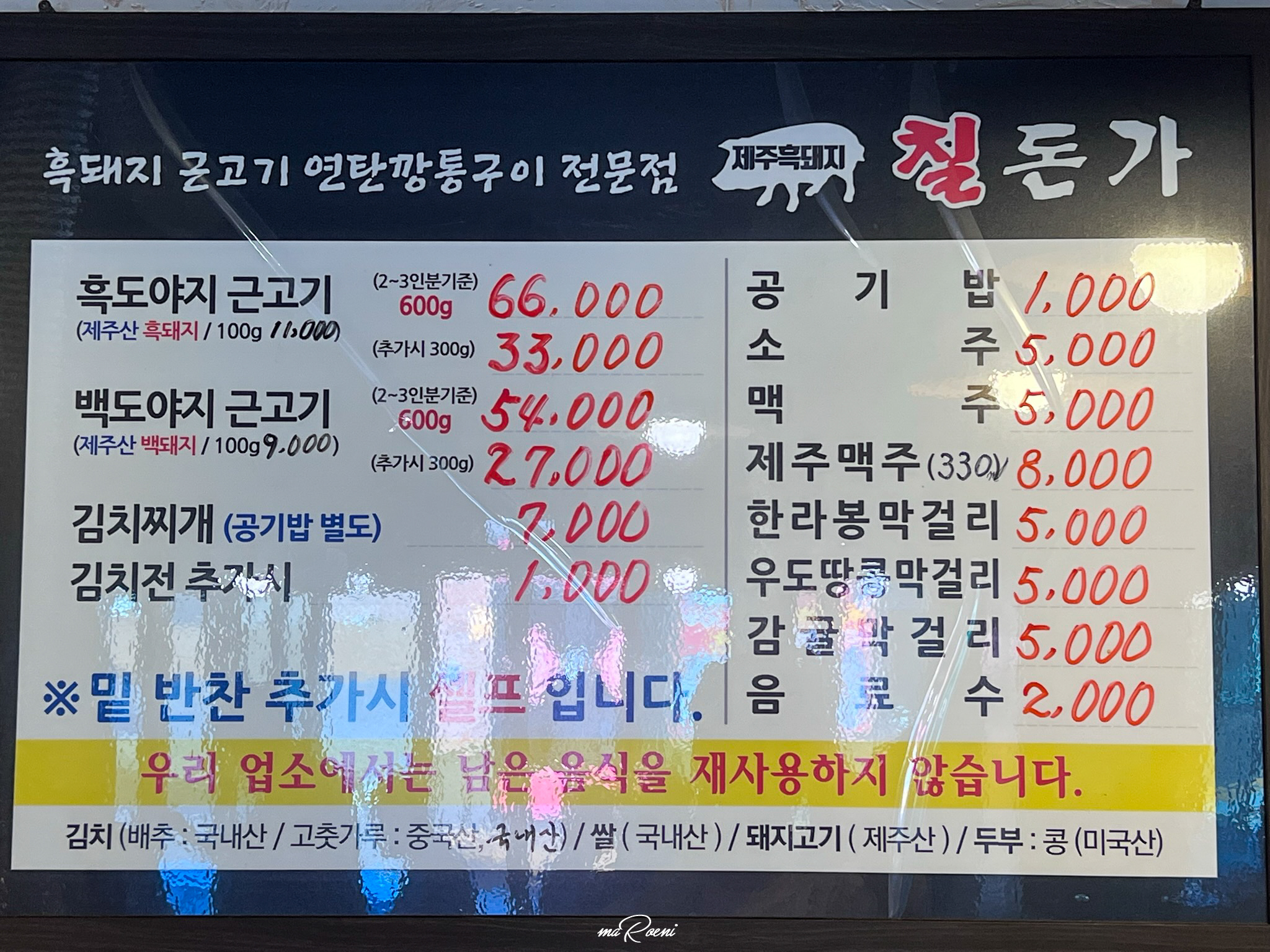 근데 진짜 거짓말 하나도 안 보태고 맛은 있었다. 살면서 여러 종류의 고기들을 접하긴 했지만, 이렇게 여운이 남는 고기는 처음이랄까? 돼지고기치고는 가격이 다소 비싼 편이지만, 다시 한번 찾아가 보고 싶을 정도로 정말 맛있는 흑돼지였다. 라고 먹을때까지는 분명 이렇게 생각했었는데 계산 후 표선해수욕장에서 이를 쑤시며 10만원이 넘게 찍혀있는 계산서를 보니 흑돼지와 백돼지는 도대체 뭐가 다른지, 다른 식당과 칠돈가는 무슨 차이가 있는 건지 등등.. 경제적 고난에 의한 현자타임이 급작스럽게 찾아왔다.