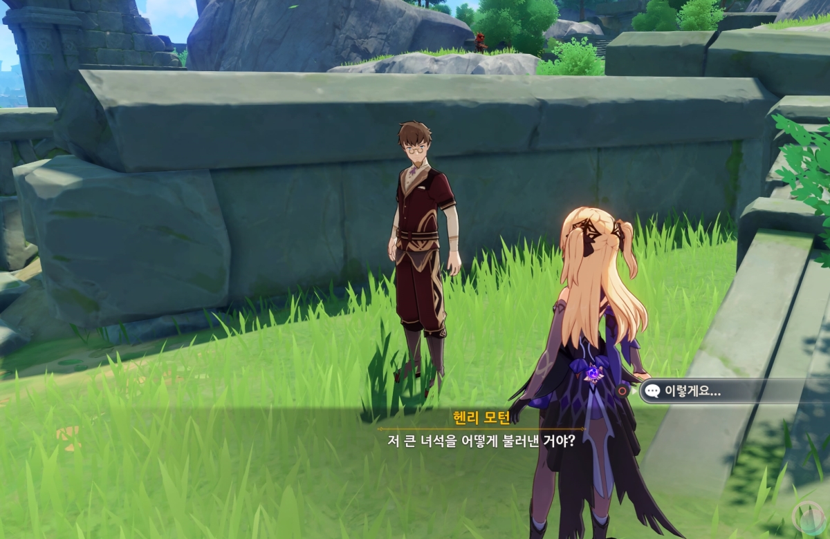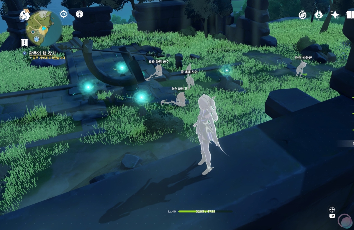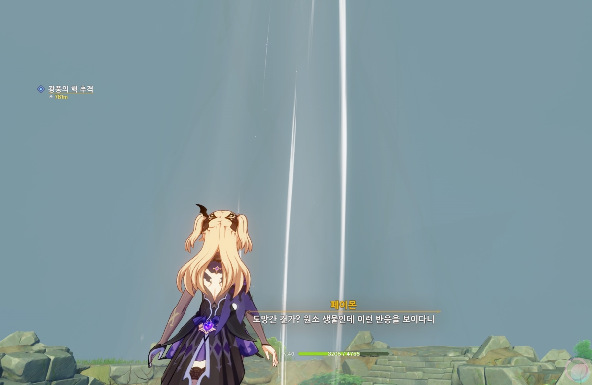 뭔가 알 수 없는 멘트가 나오면서 페이몬이 주변에 무언가가 있을 것 같으니 한번 둘러보자고 합니다.