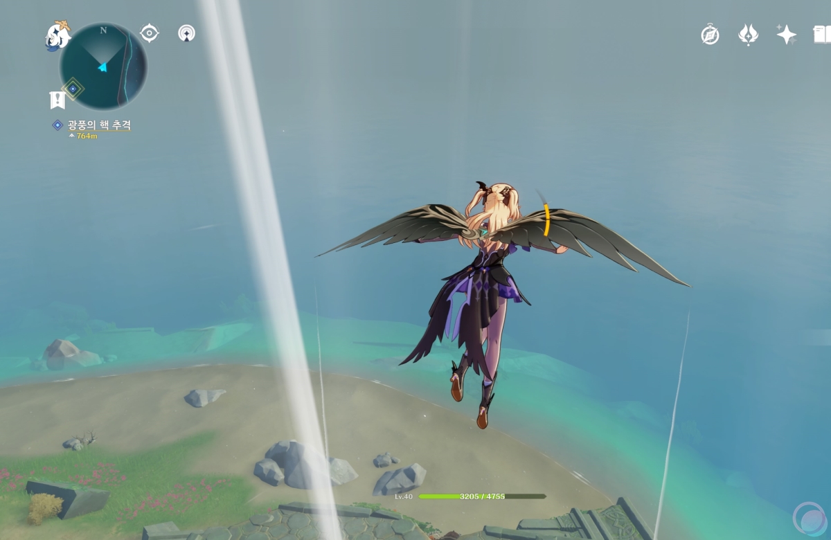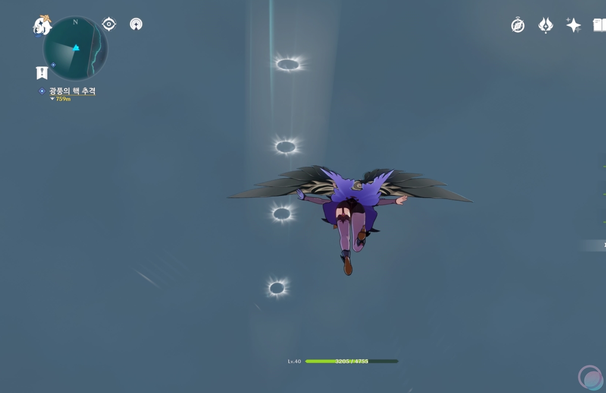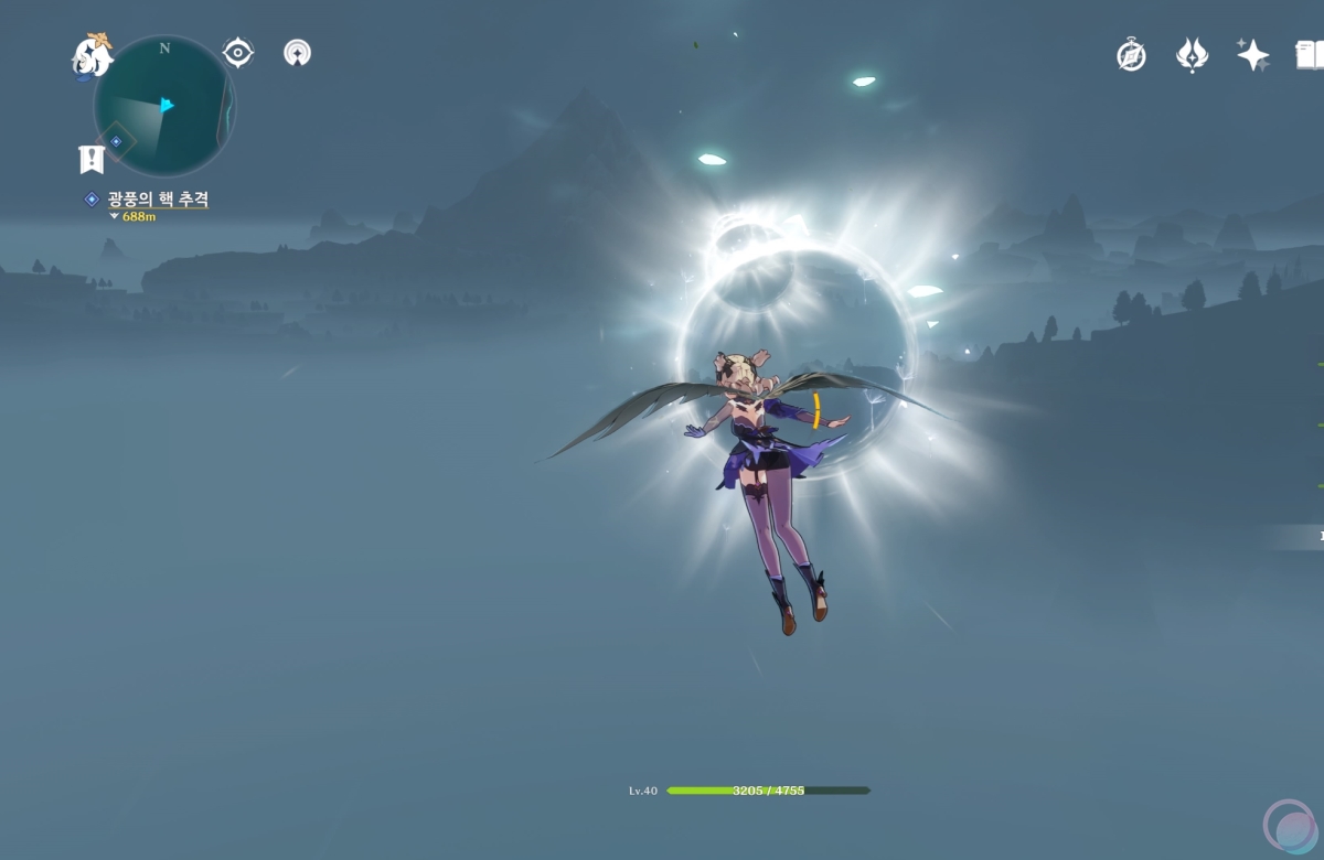 광풍의 핵이 결계를 치면 장판데미지가 들어옵니다. 데미지가 어마무시하니 이때는 생성된 기류를 타고 하늘로 도망가세요.