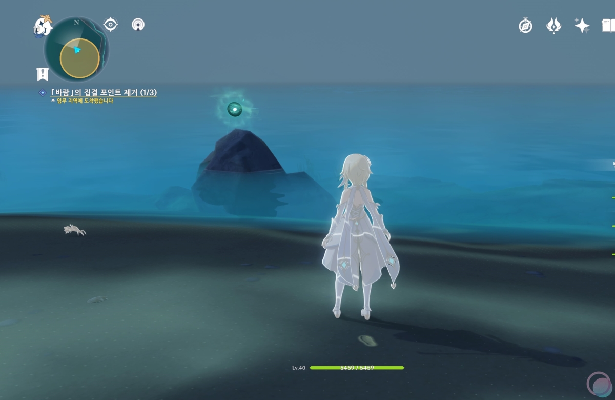 바다 위에 떠있는 마지막 바람 구슬을 제거하려다가