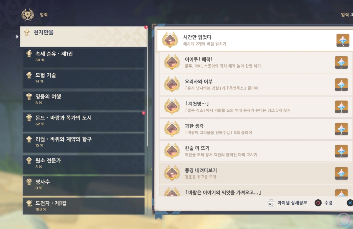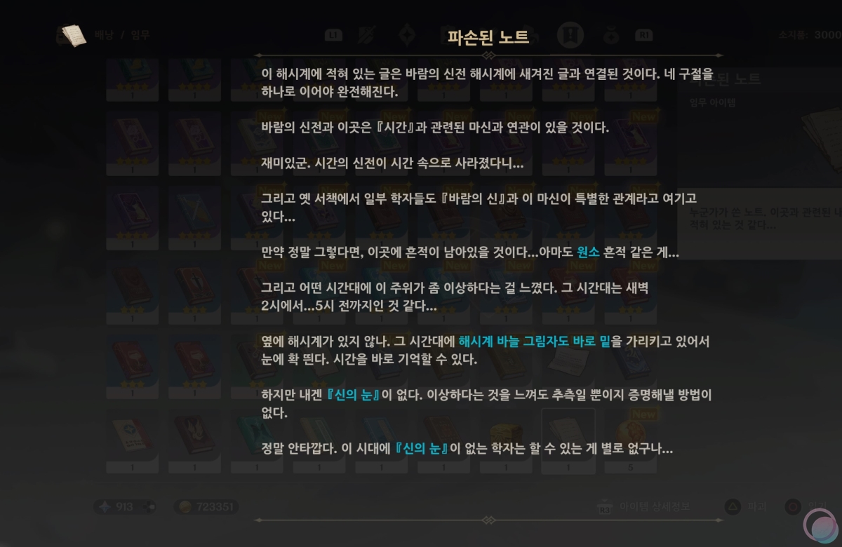 무인도에 숨어있던 마지막 바람신의 눈동자를 끝으로 몬드 지역 노가다를 끝냈네요. 도움이 되셨길 바랍니다.