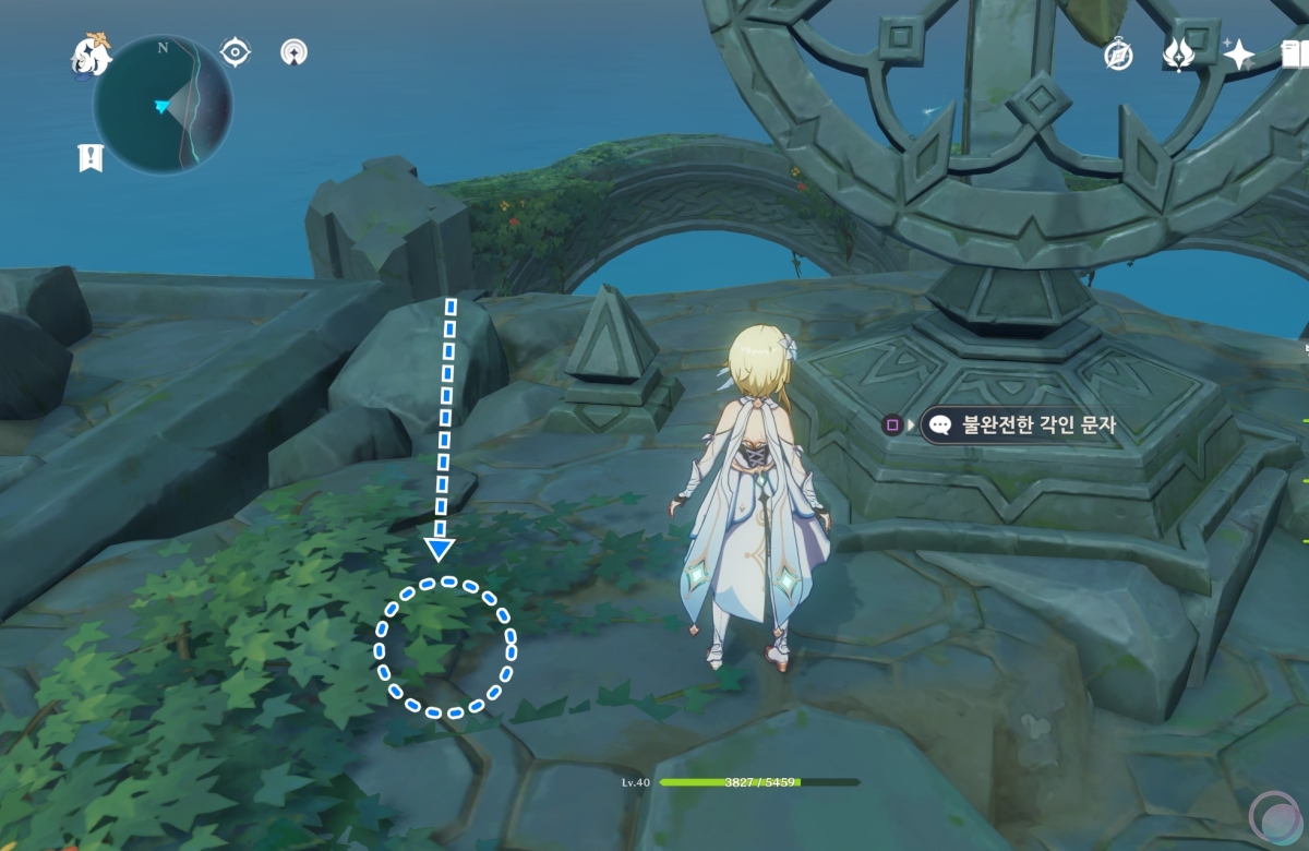 무인도에 도착하면 섬 주위에서 보물상자를 먹을 수 있고 섬 중심에서 큰 해시계가 보일텐데요. 그 뒤로 바람신의 눈동자가 있고 해시계를 기준으로 왼쪽 아래로 내려가면