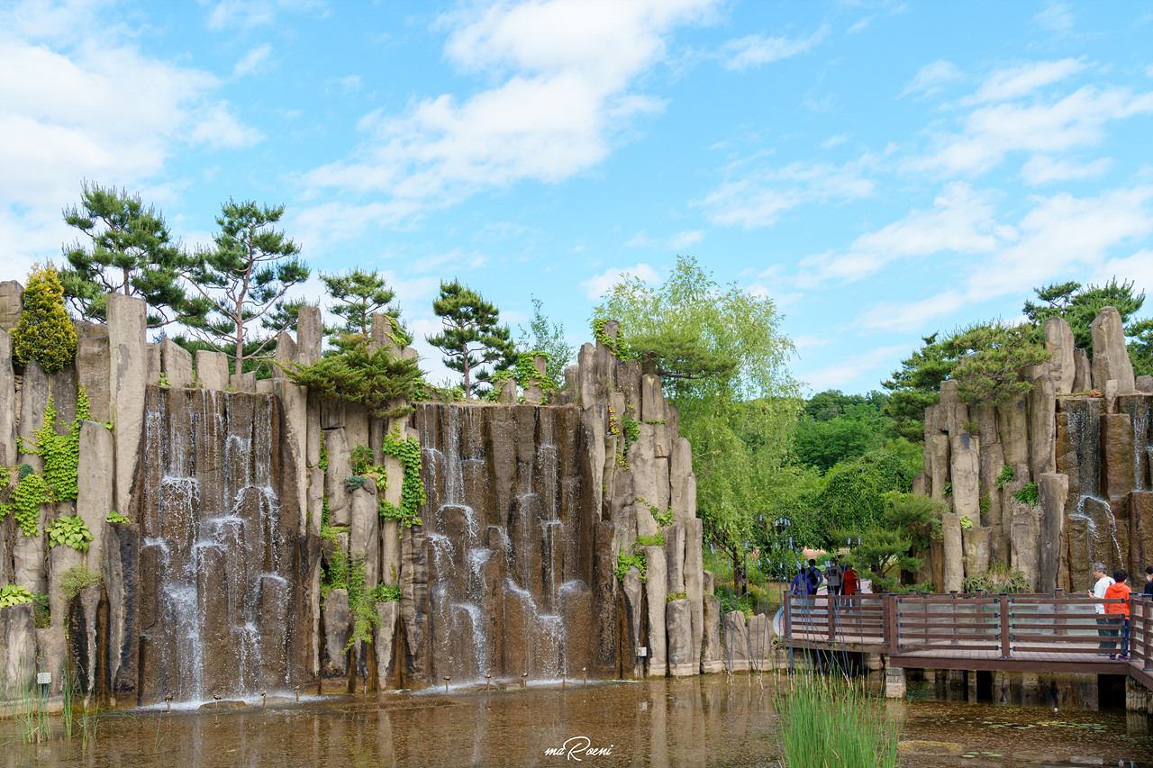 초가집을 지나 다음 장소로 이동하면 주상절리 모양의 인공폭포가 보인다. 폭포는 상시 가동은 아닌 것 같고 일정 시간마다 물이 쏟아지는 것 같은데 몇 번 봤음에도 불구하고 아직까지 그 타이밍을 모르겠다.