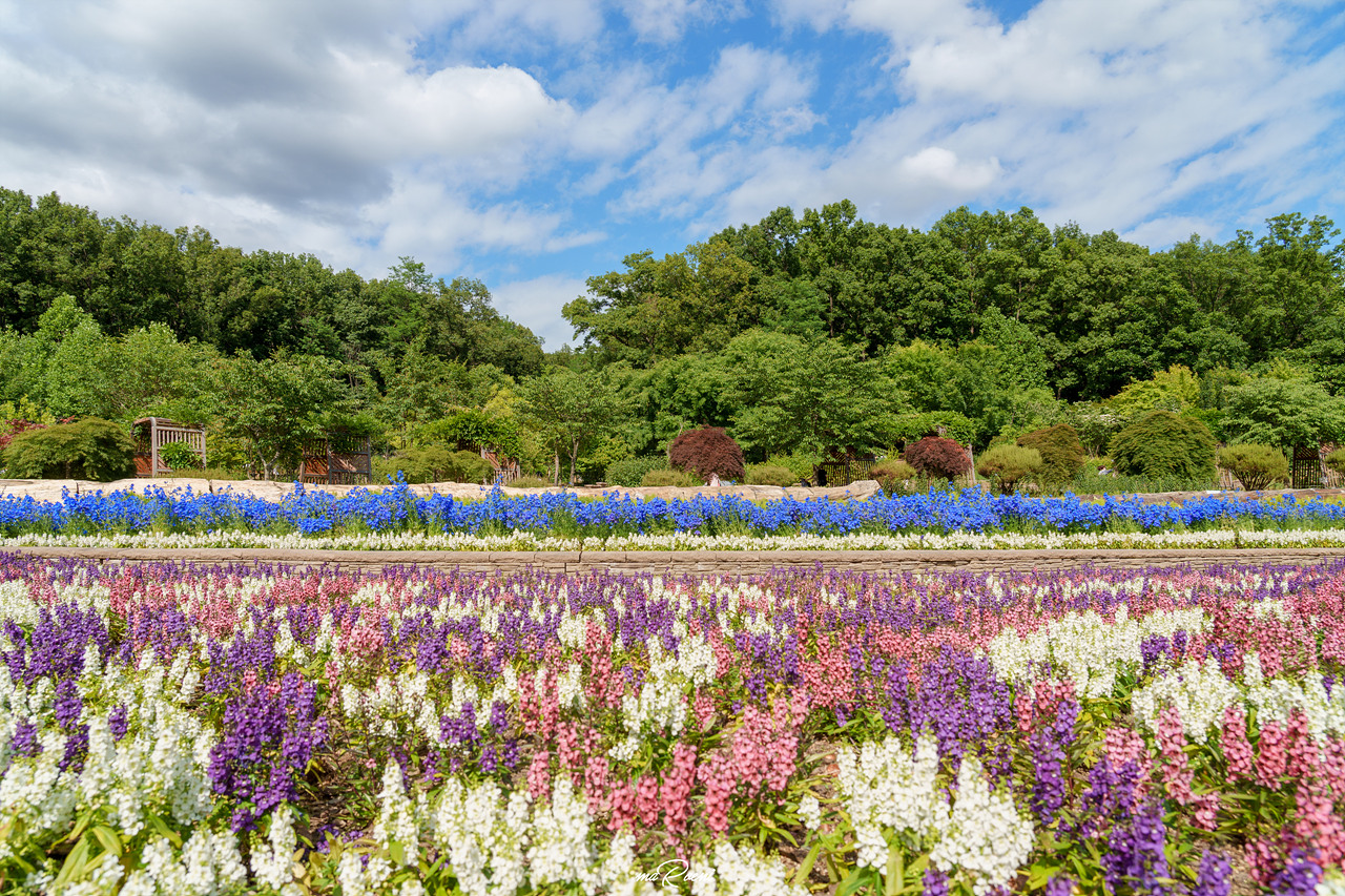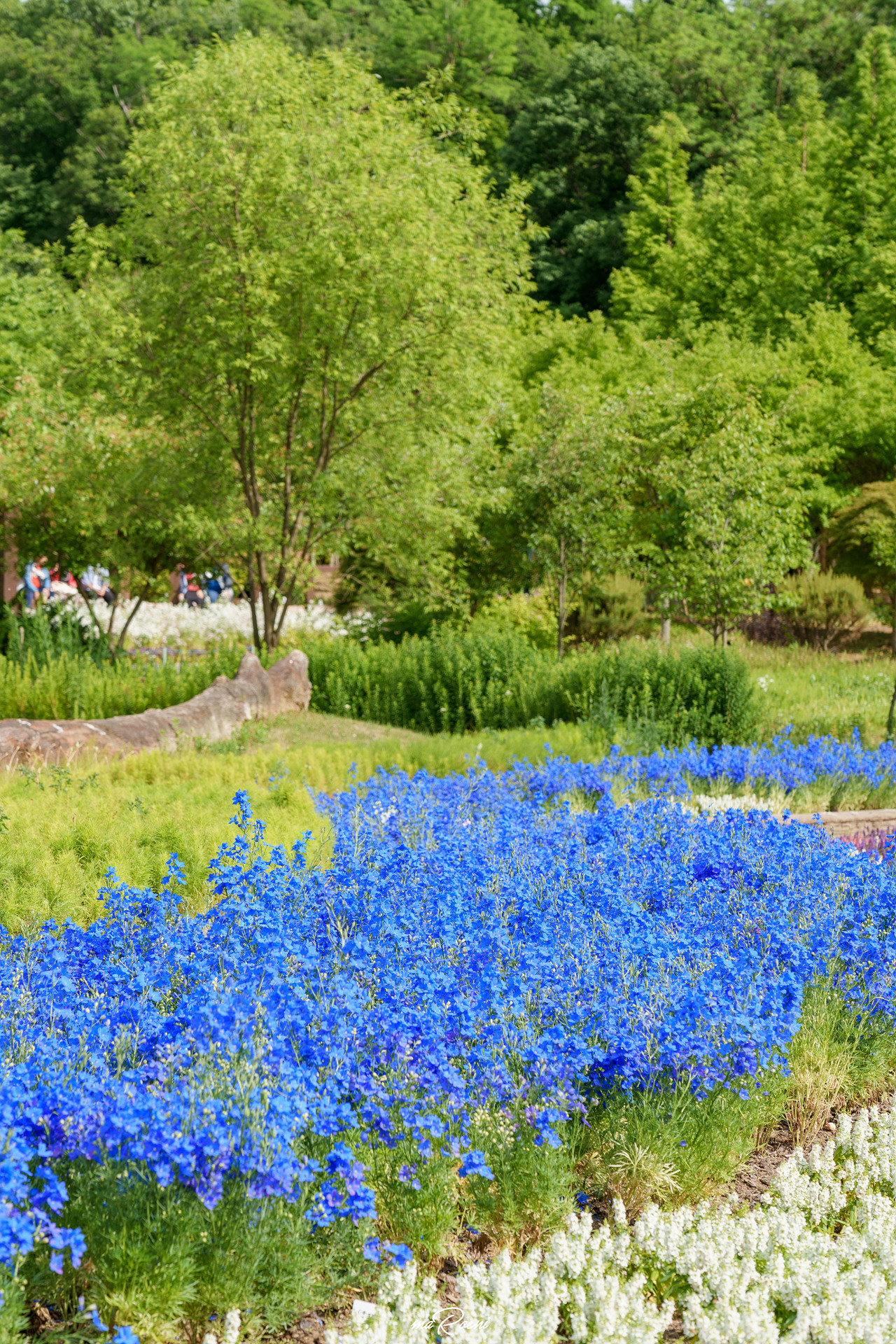 암석원 맞은편으로 보고만 있어도 웃음이 절로 나오는 꽃들이 보인다. 근데 뒤에 있는 파란색 꽃의 이름은 도저히 모르겠더라. 린넨처럼 보이기도 하고 거대화한 이사도라처럼 보이기도 했다. 가까이 가서 보고 싶었지만 저쪽은 진입금지라 확인이 불가능했다. 도대체 무슨 꽃일까?