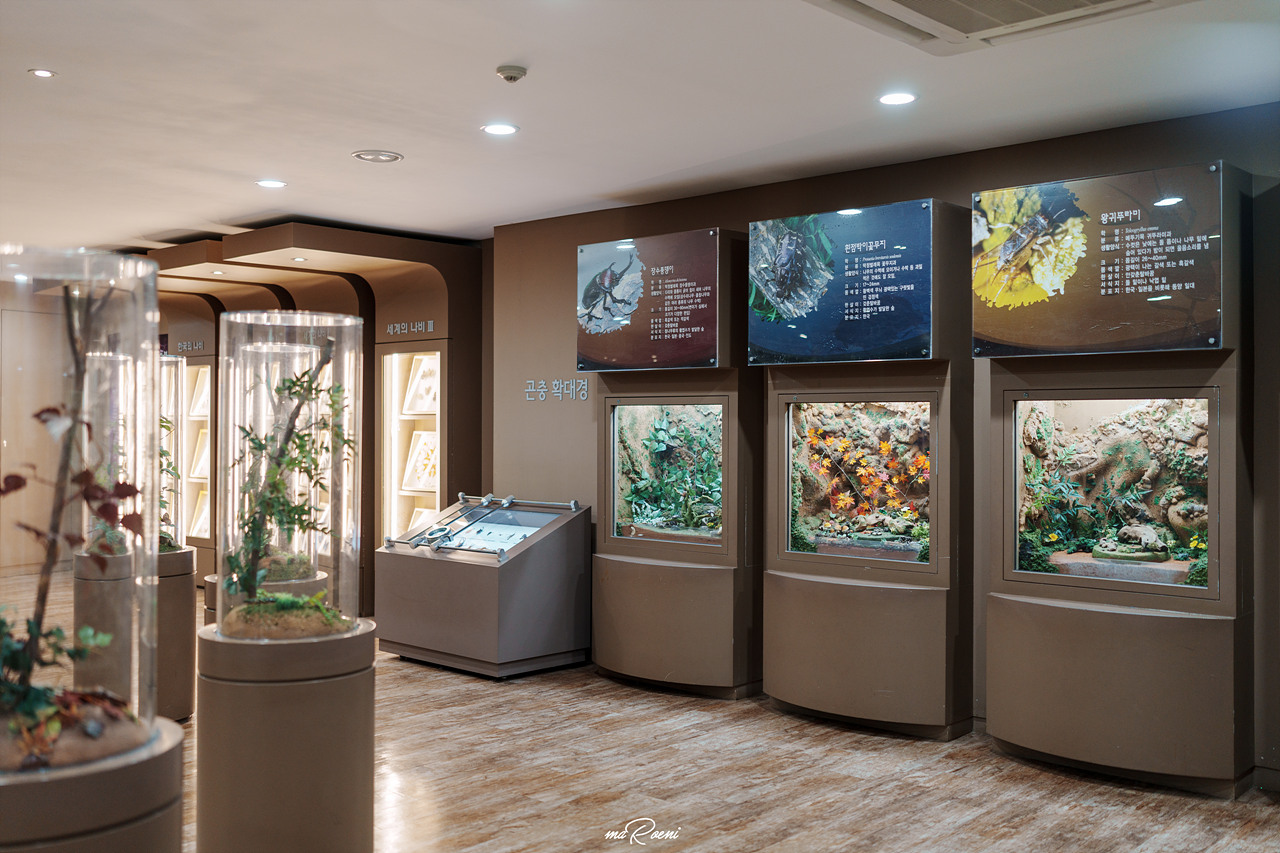 자연생태박물관은 2층 규모로 하천생태, 곤충, 식물, 공룡관 총 4개의 테마관으로 구성되어있는데, 각 테마관의 규모가 그리 크지 않아서 10~20분 정도면 충분히 관람할 수 있다. 곤충관에는 햄스터나 거북이도 있었고 파충류와 곤충들이 있다. 아무래도 여자아이들이 싫어하는 생물들이 모여있어서 그런지 남자아이들이 더 좋아하는 분위기더라.