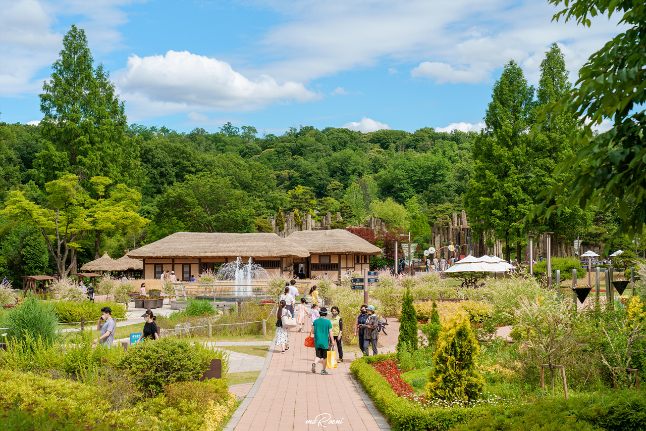 무릉도원수목원 입구로 들어가면 가장 먼저 보이는 초가집. 딱히 별볼일 없어 보이는 이곳이 바로 농경유물전시관이다.