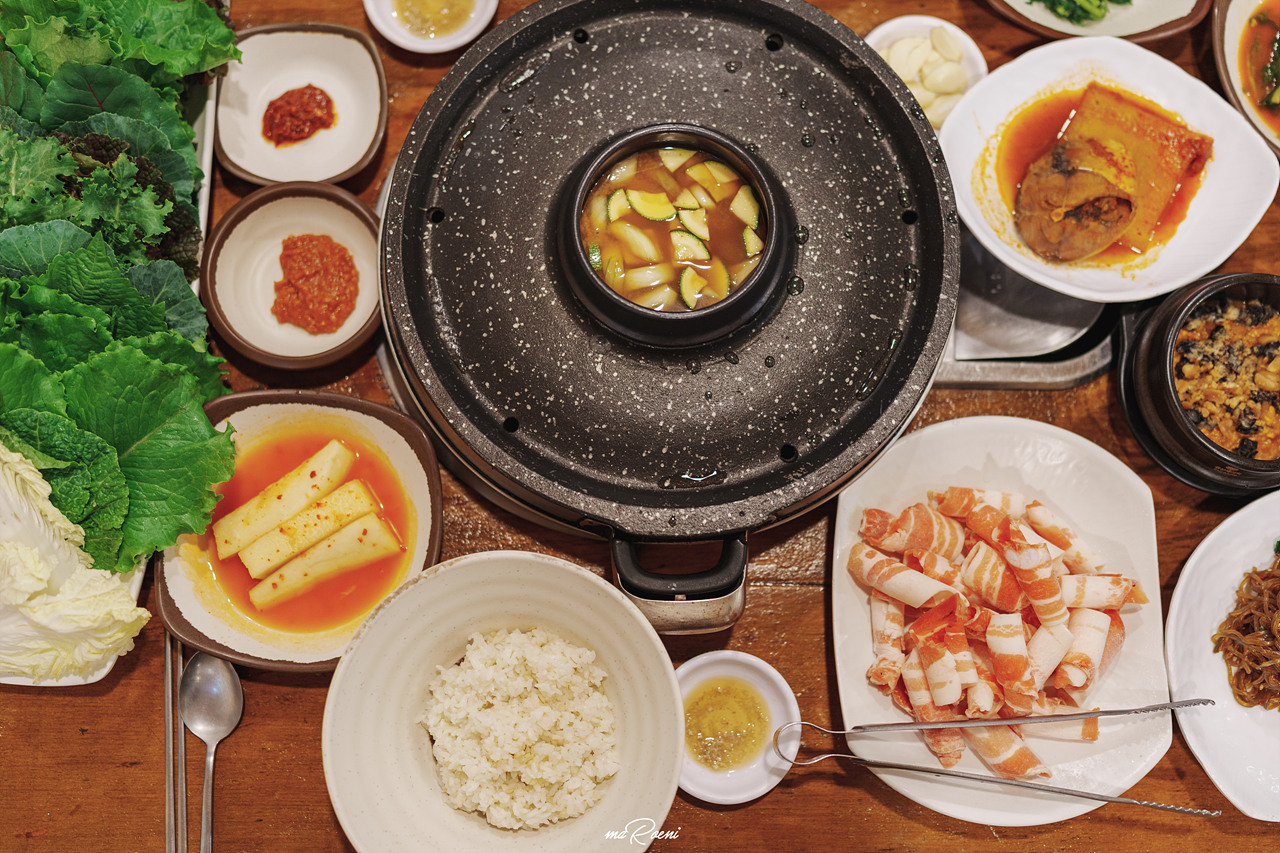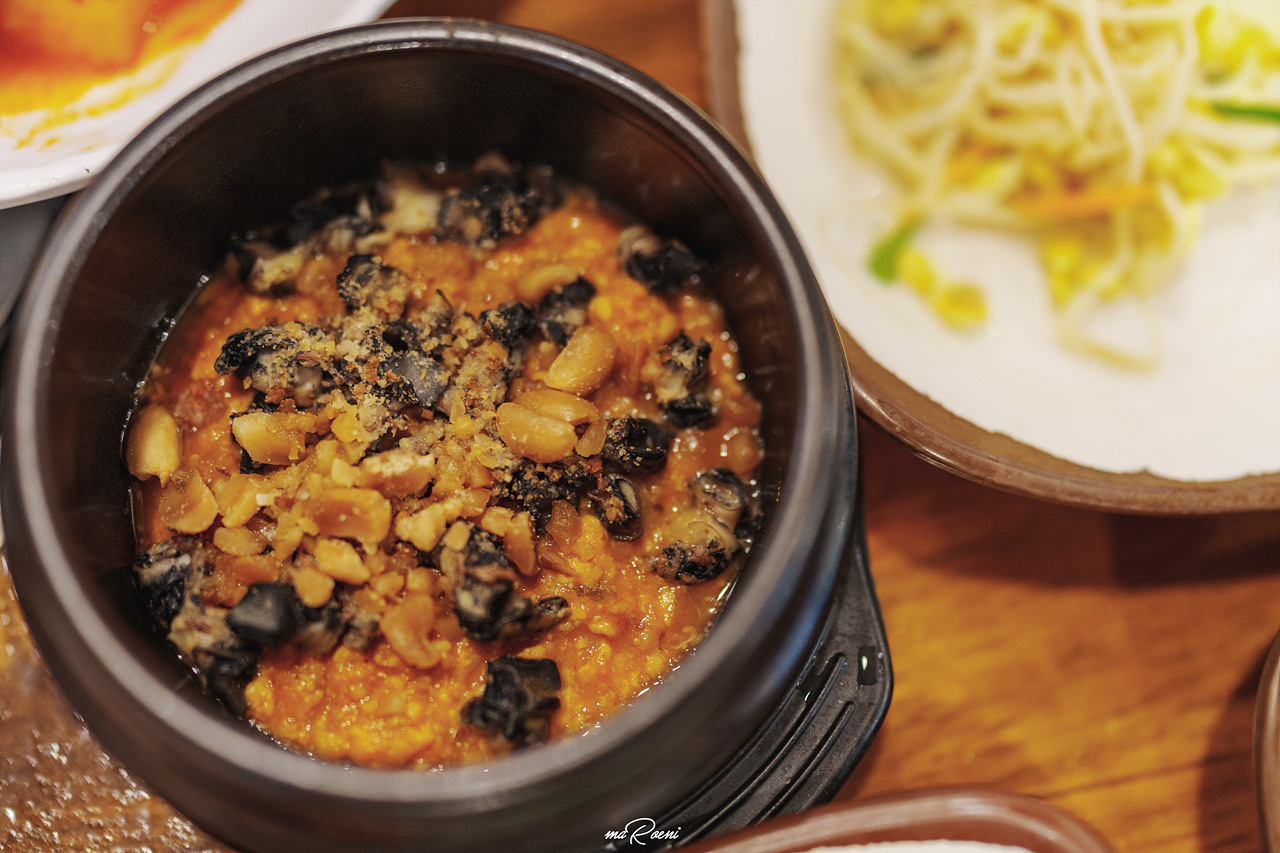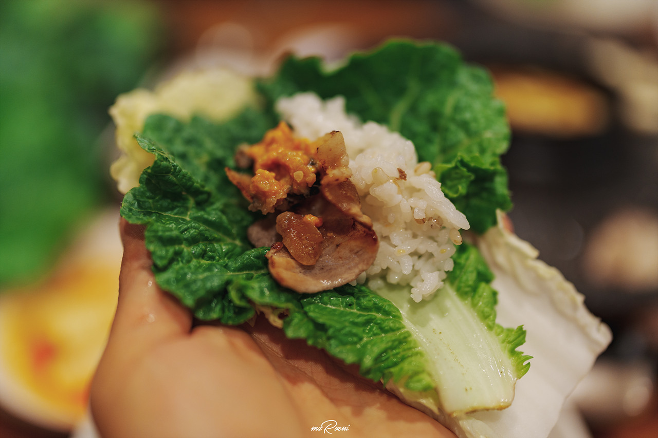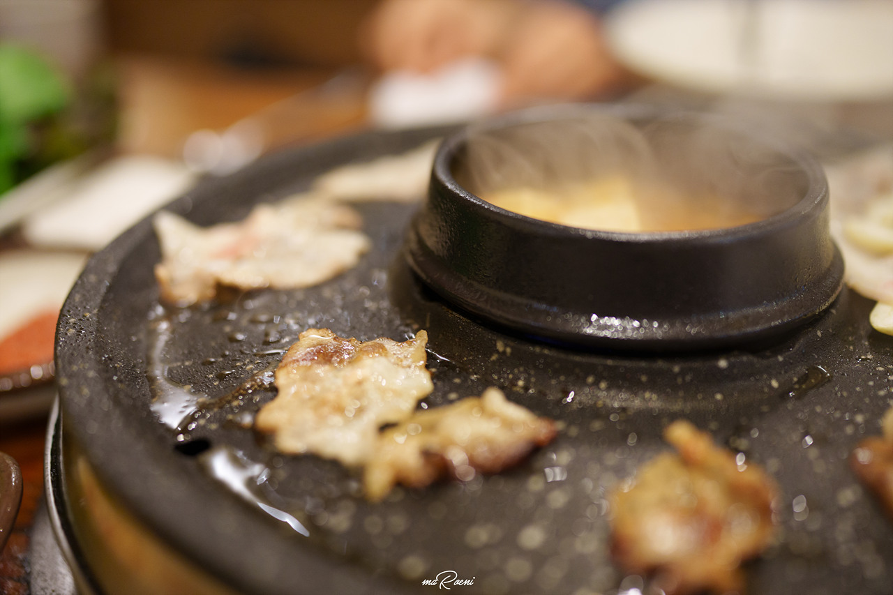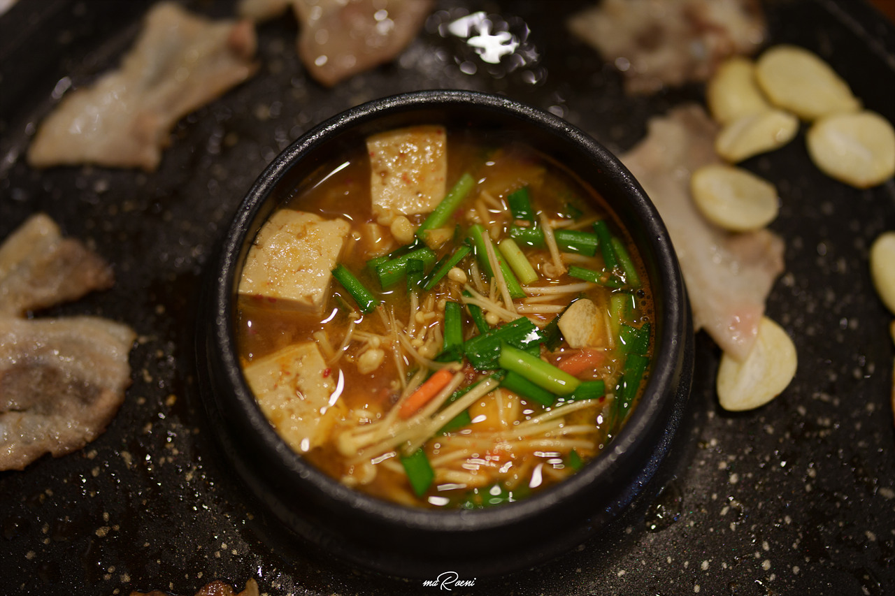 다른 포스팅을 보니 된장찌개가 따로 나오던것 같은데, 불판이 업그레이드돼서 그런가 일반 고기집처럼 불판 가운데에 된장찌개가 합체해서 나온다. 된장찌개를 말하니까 생각난건데 찌개를 먹다 보면 직원분께서 국물과 건더기를 자동으로 리필해주신다. 근데 리필을 하고 나면 처음의 그 맛(?)이 싹 사라지고 이상한 버섯물맛으로 변해버리더라.. 나는 개인적으로 노맛이었는데 여자친구는 그게 더 맛있다고 했다.