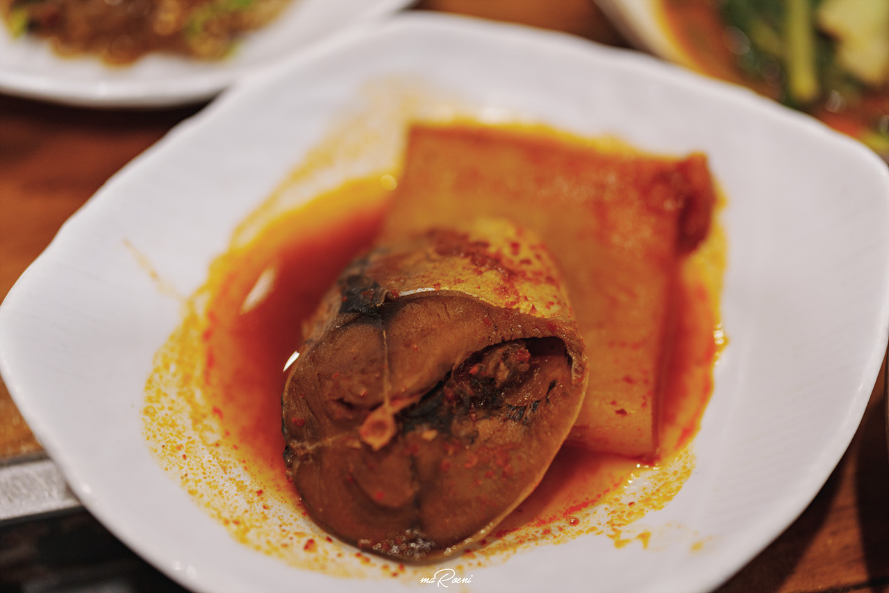 고등어조림 같으면서도 삼치조림 같은 생선 조림이다. 무는 아주 말랑말랑하게 잘 익었는데, 간이 살짝 달게 느껴졌다.