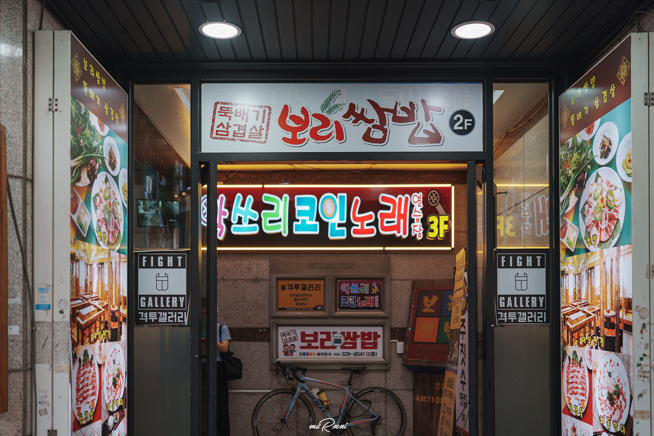 이 근처를 수없이 지나다녔지만 들어가보는건 처음인 건물에 보리쌈밥집이 있었다. 연식이 있어서 그런가.. 건물 외관이 너무 지저분해 보였지만, 사진으로 봤던 보리쌈밥집 자체는 상당히 깔끔해 보여서 일단 들어가 봤다.