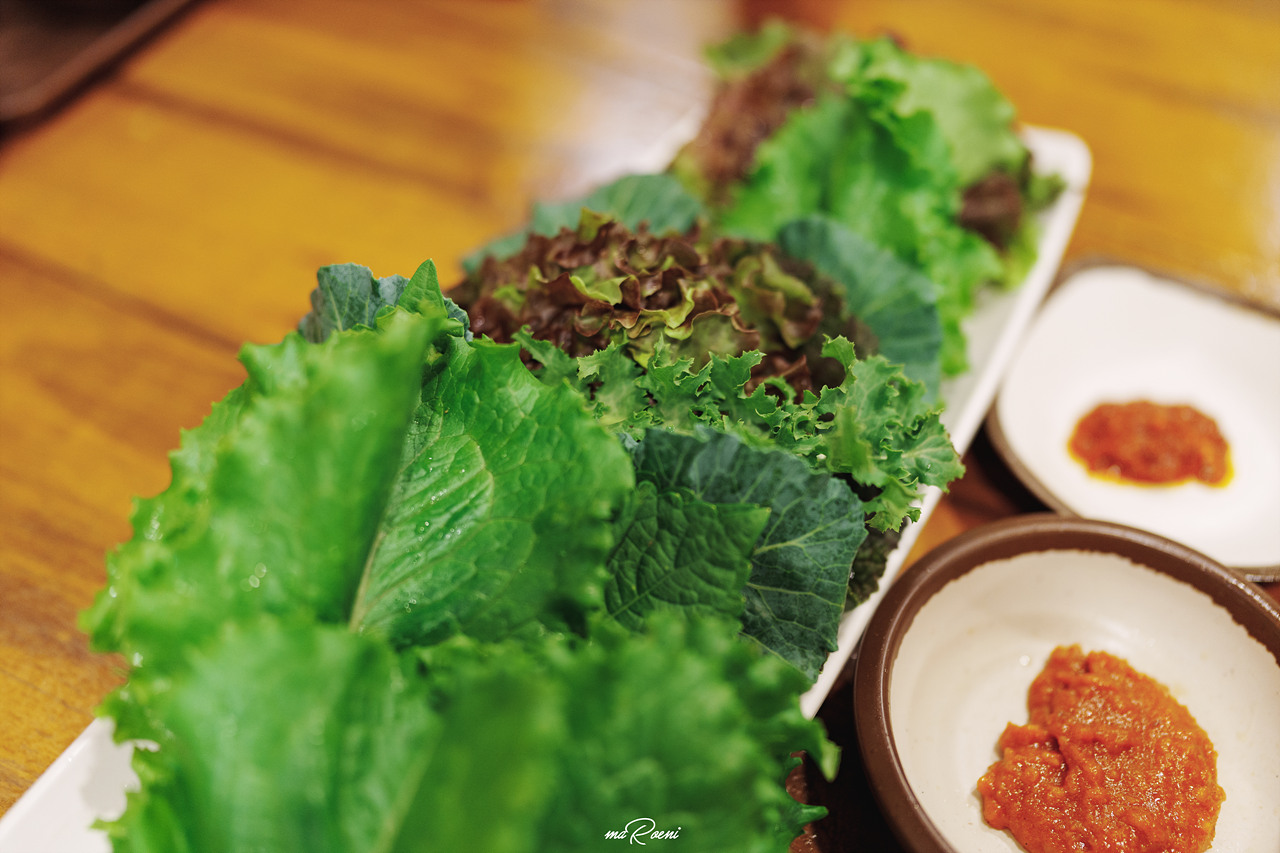 쌈채소는 4~5종류 정도 있었는데, 내가 구분 가능한건 배추와 상추, 깻잎 그리고 치커리로 보이는 풀들이 있었다. 역시나 쌈밥집답게 채소의 신선도는 아주 좋았다.